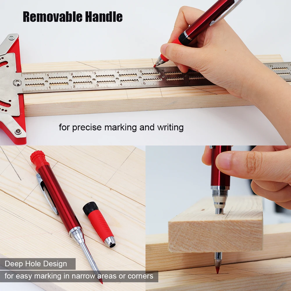 (2,8 mm) Set di matite meccaniche 2 in 1 per la lavorazione del legno con guaina, matita automatica con foro profondo, penna per marcatura per piastrelle decorative