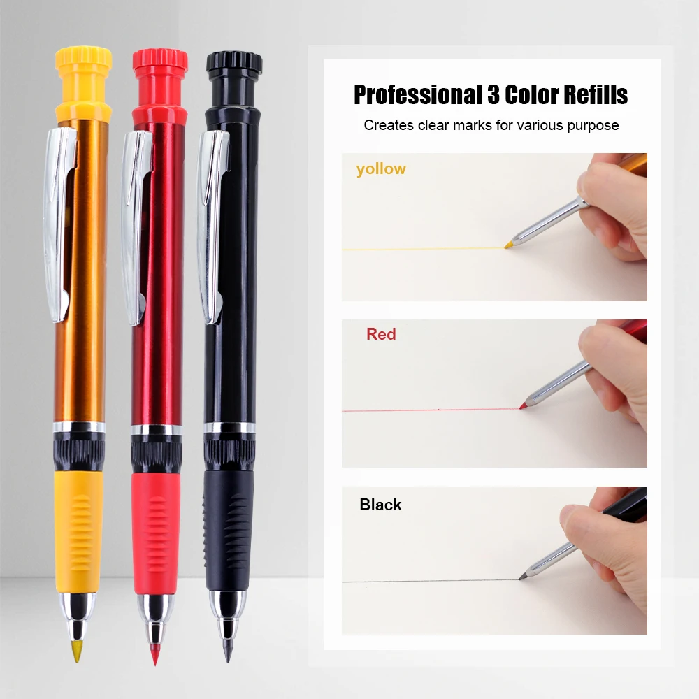 (2,8 mm) Set di matite meccaniche 2 in 1 per la lavorazione del legno con guaina, matita automatica con foro profondo, penna per marcatura per piastrelle decorative