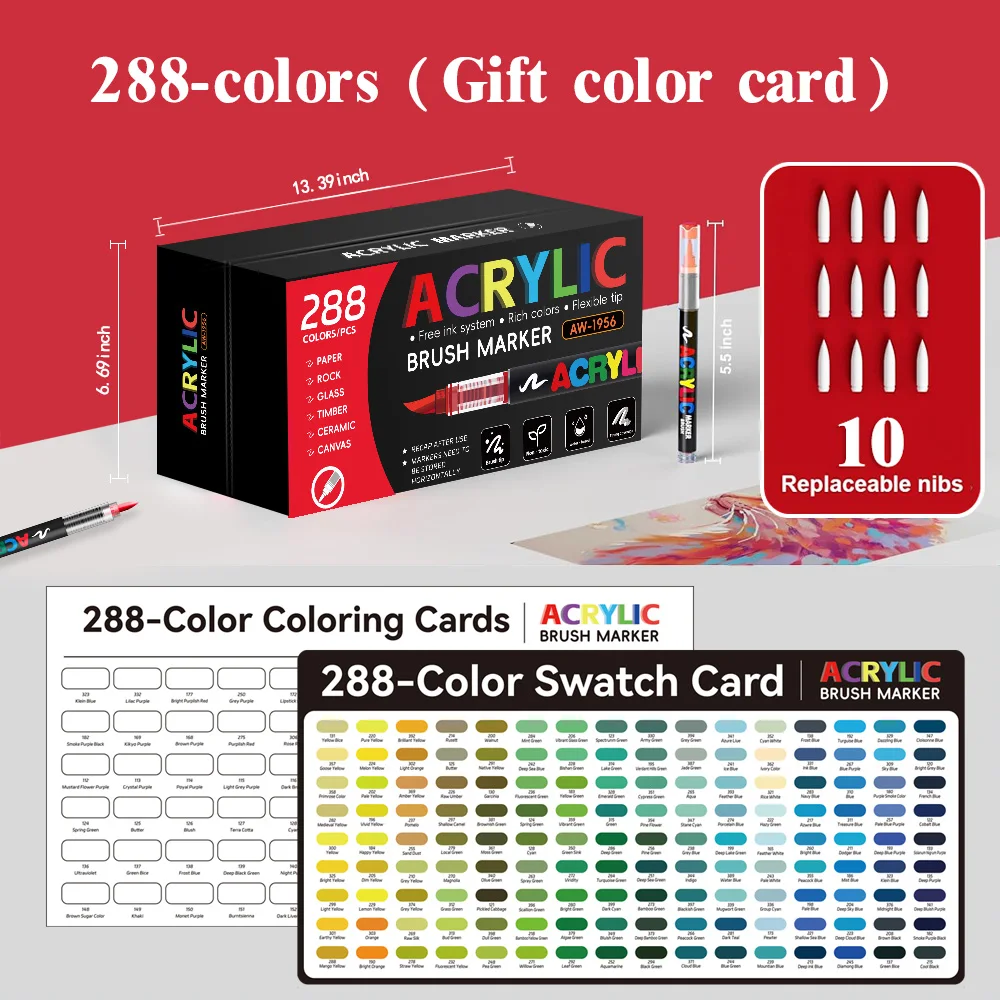 288 colori Pennarelli artistici Serie di colori grandi Pennarelli acrilici per pittura Disegno CD fai da te Pietra uovo per studenti Principianti Cancelleria