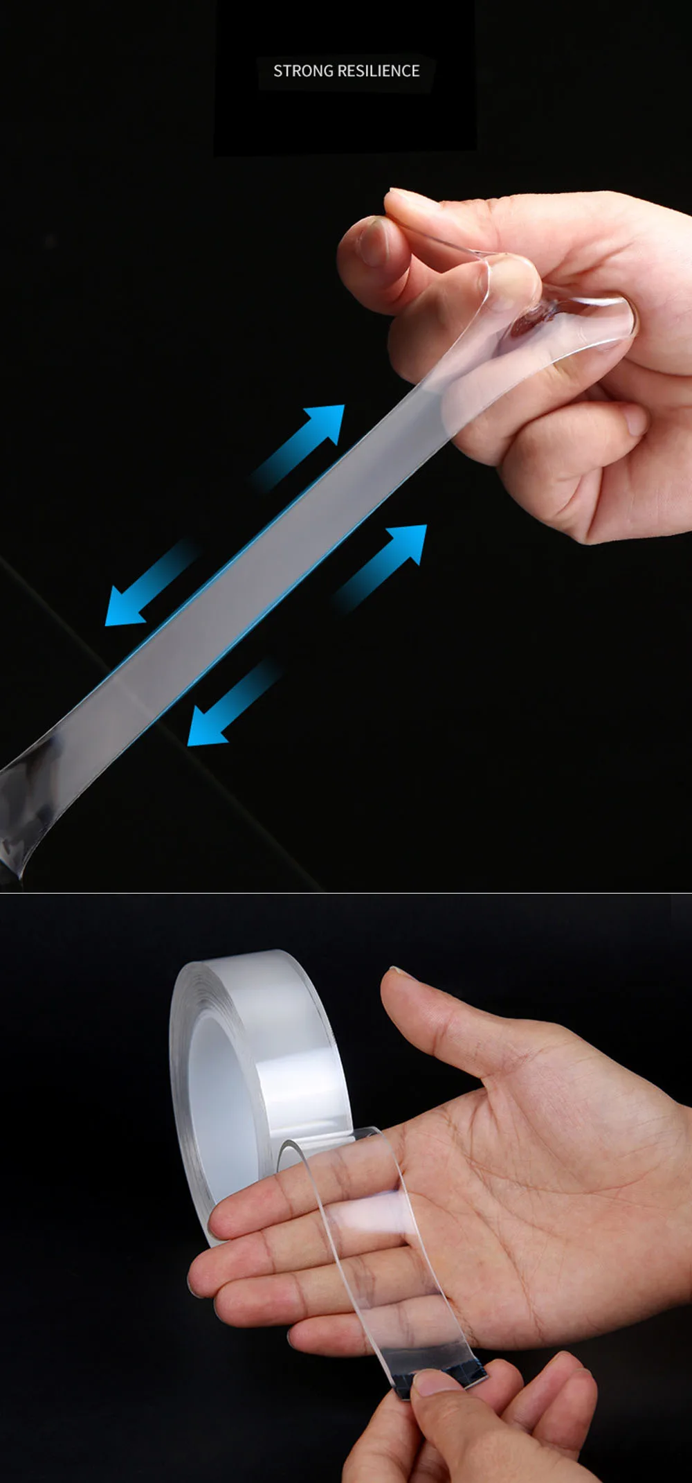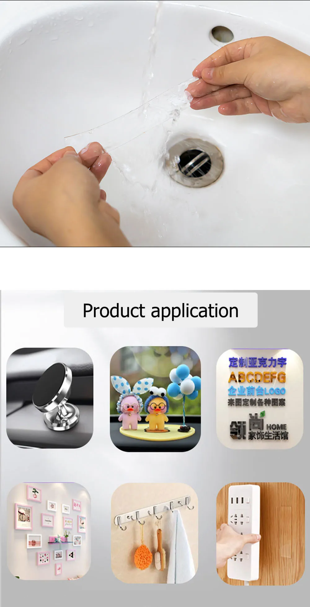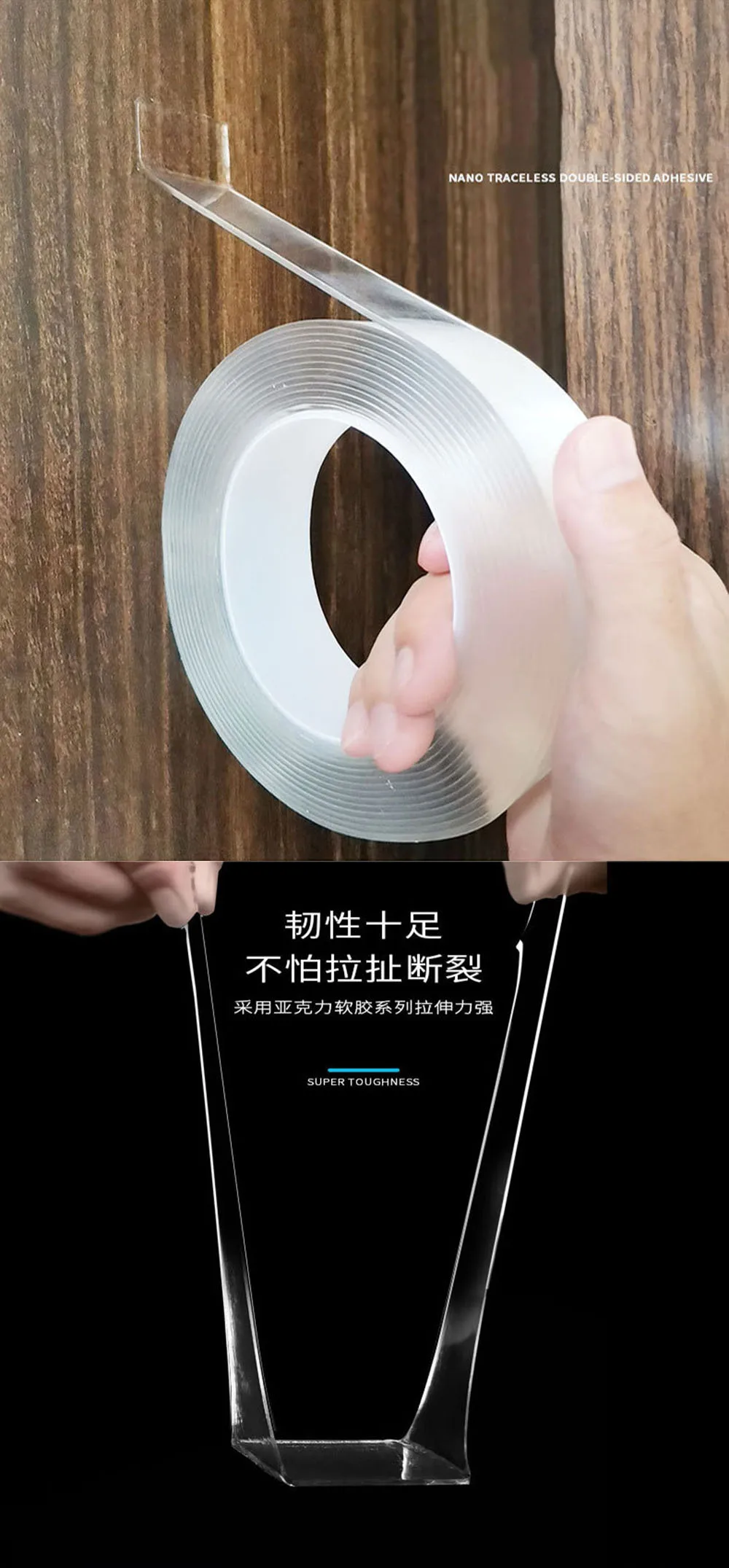 Nastro biadesivo lavabile: puoi lavarlo con acqua e asciugarlo per riacquistare la sua appiccicosità quando il nastro si sporca, è pratico e durevole da usare.