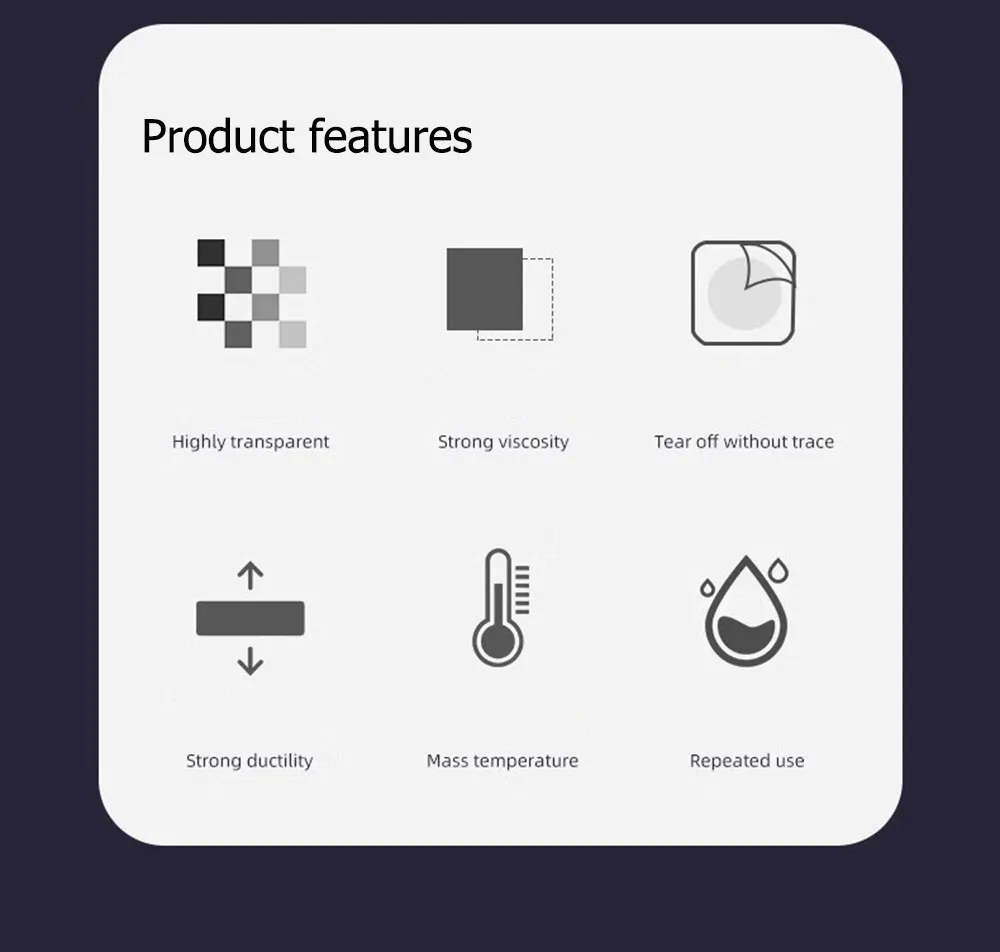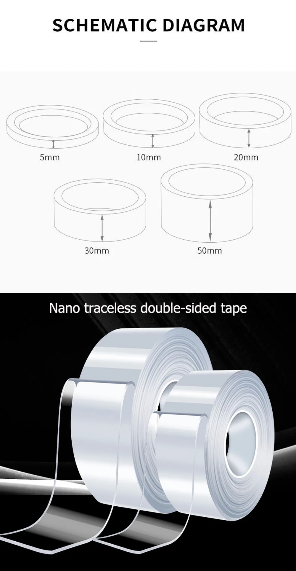 Riutilizzabile: può essere utilizzato ripetutamente, ti assicuriamo che il nano nastro è senza traccia quando si strappato.