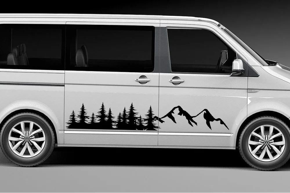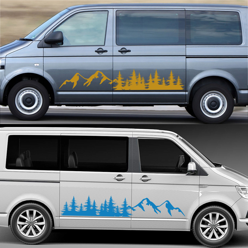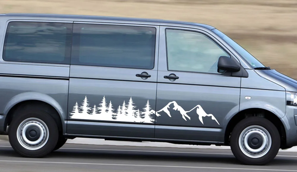 2PCS Auto Tree Mountain Decal Forest Car Door Side Stickers per Volkswagen VW Multivan TRANSPORTER T5 T6 Toyota Elfa accessori