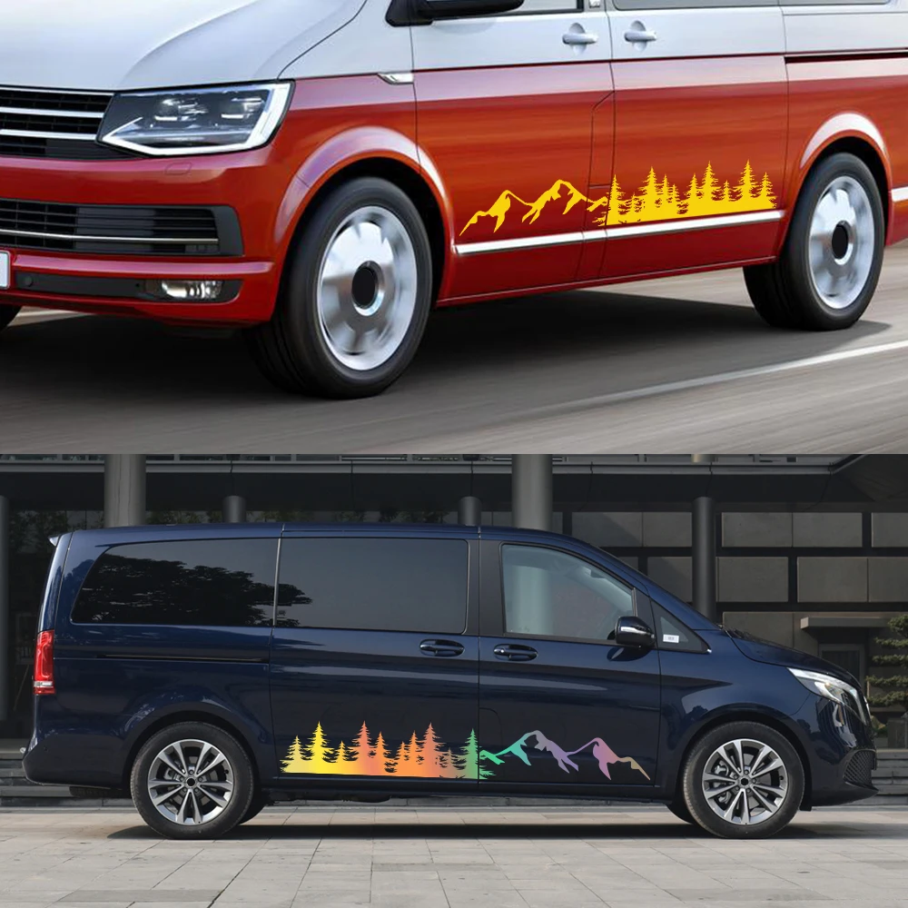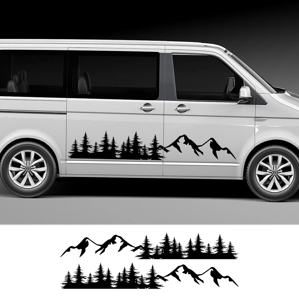 2PCS Auto Tree Mountain Decal Forest Car Door Side Stickers per Volkswagen VW Multivan TRANSPORTER T5 T6 Toyota Elfa accessori