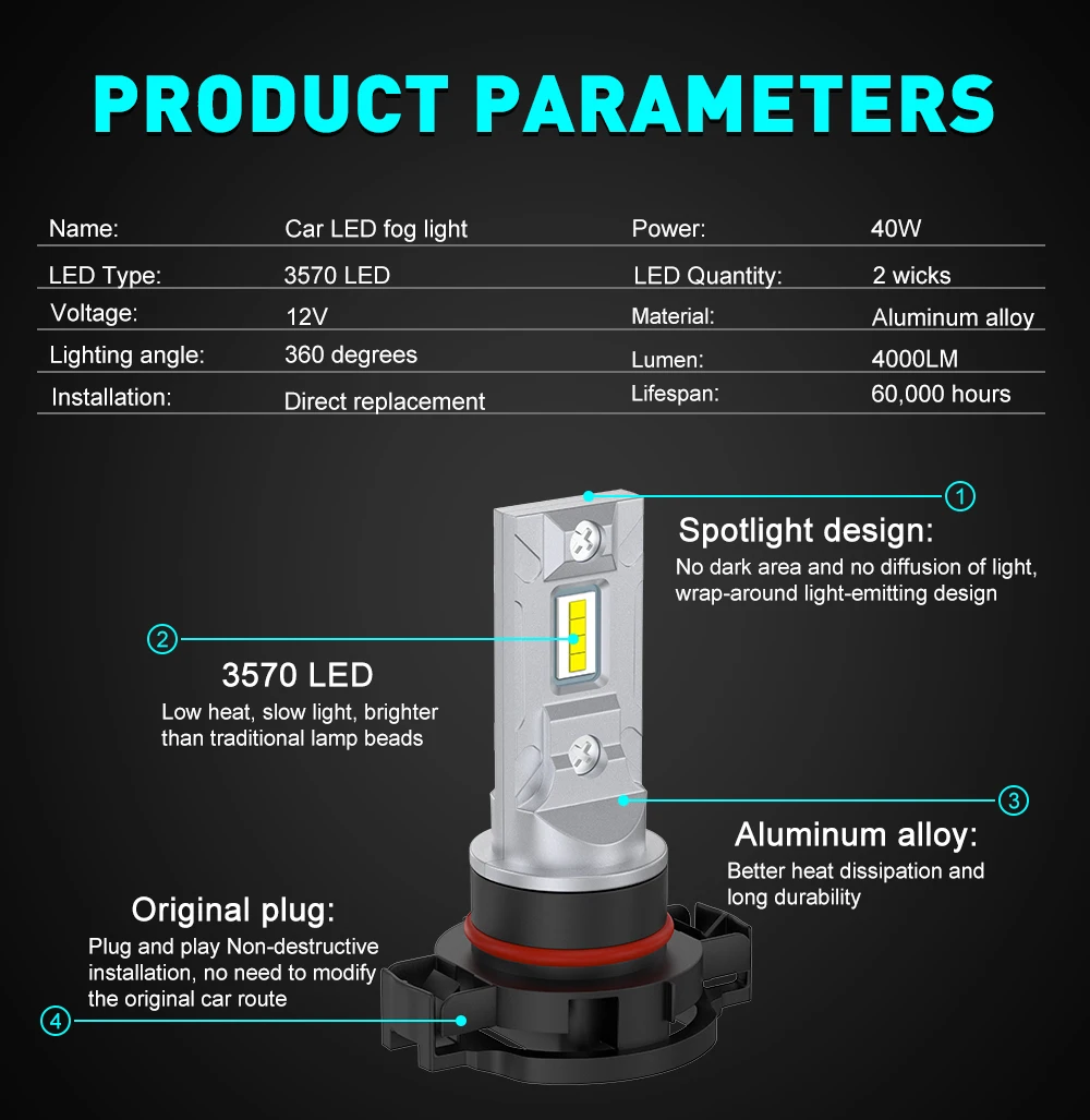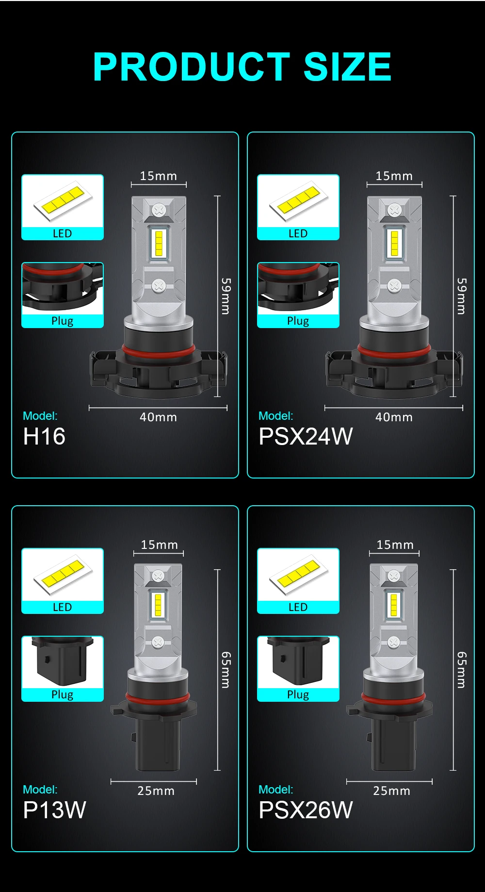 2PCS PSX24W PSX26W P13W H16 3570LED Lampadine fendinebbia impermeabili DRL luce di guida fendinebbia accessori autoSpecifica:1.Modello:PSX24W PSX26W P13W H162.Chip LED: 3570led3.Voltaggio: 12V4.Potenza: 40 W5.Flusso luminoso: 4000LM6.Temperatura colore: bianco9.Applicazione: luce diurna dell’auto e fendinebbiaPacchetto compreso:Fendinebbia 2 pezzi