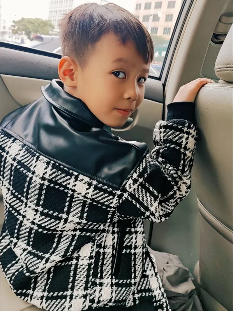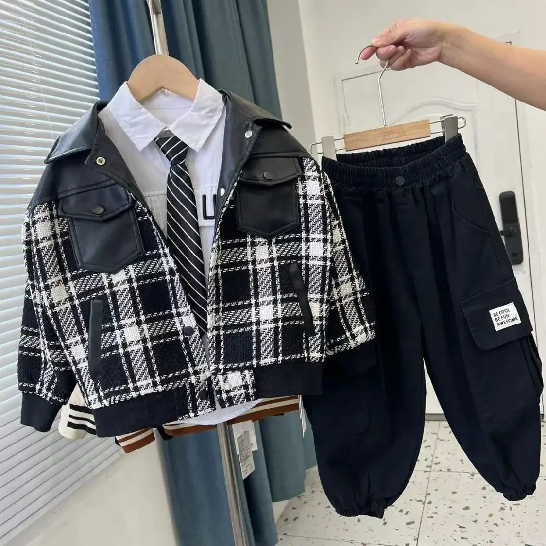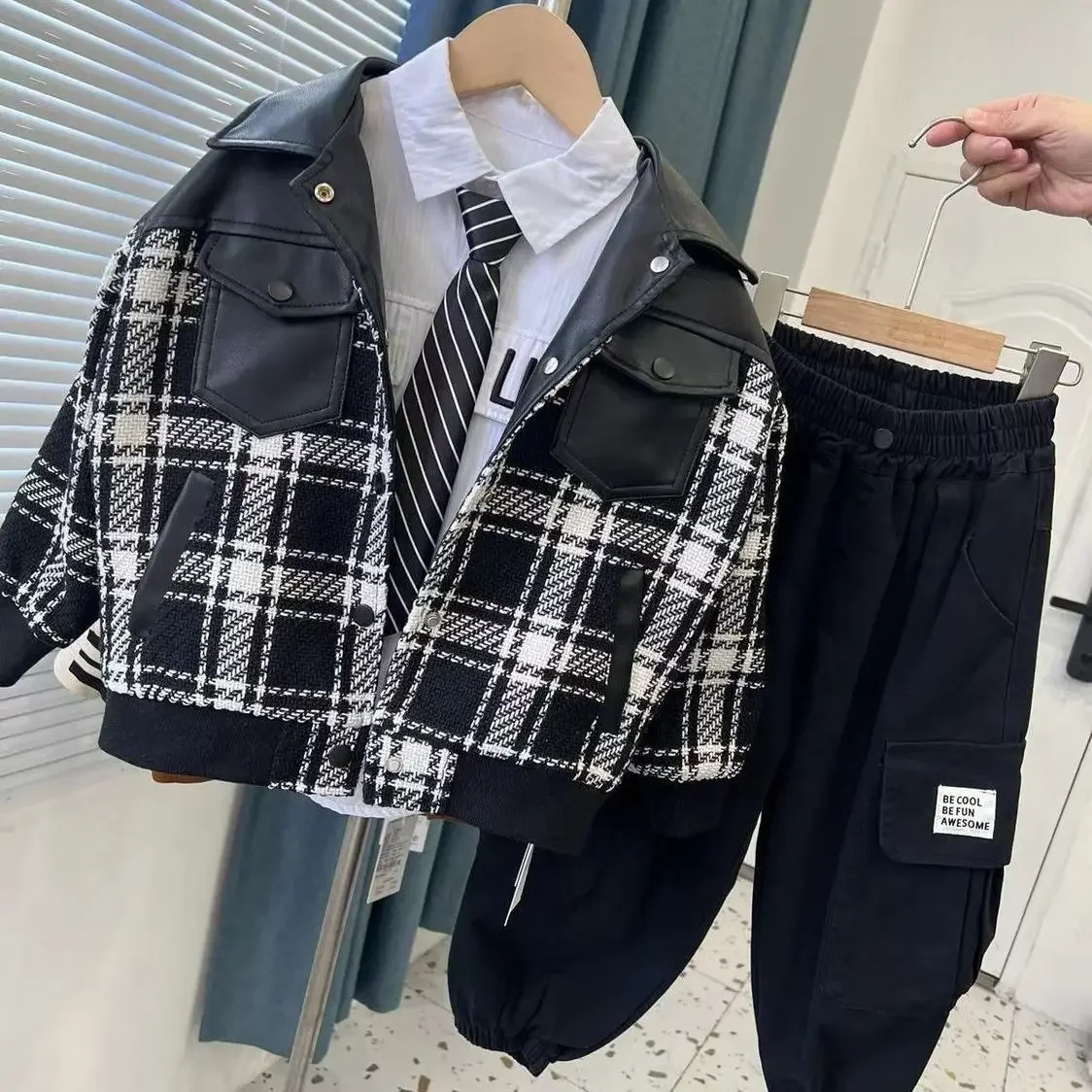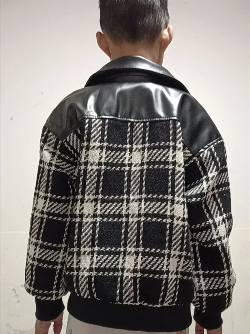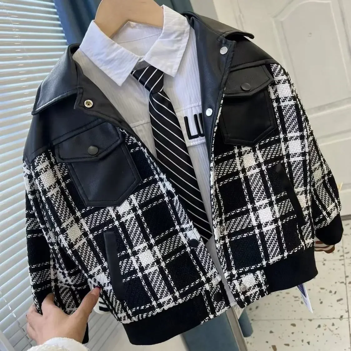 3-12Y Nuovo di Alta Qualità Adolescenti Ragazzi Cappotto Casual Coreano di Lana e PU Patchwork Giubbotti Neonate Top capretto Giacca monopetto