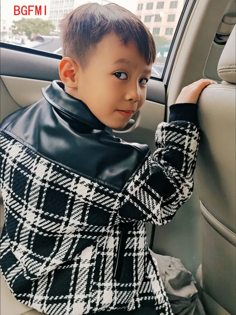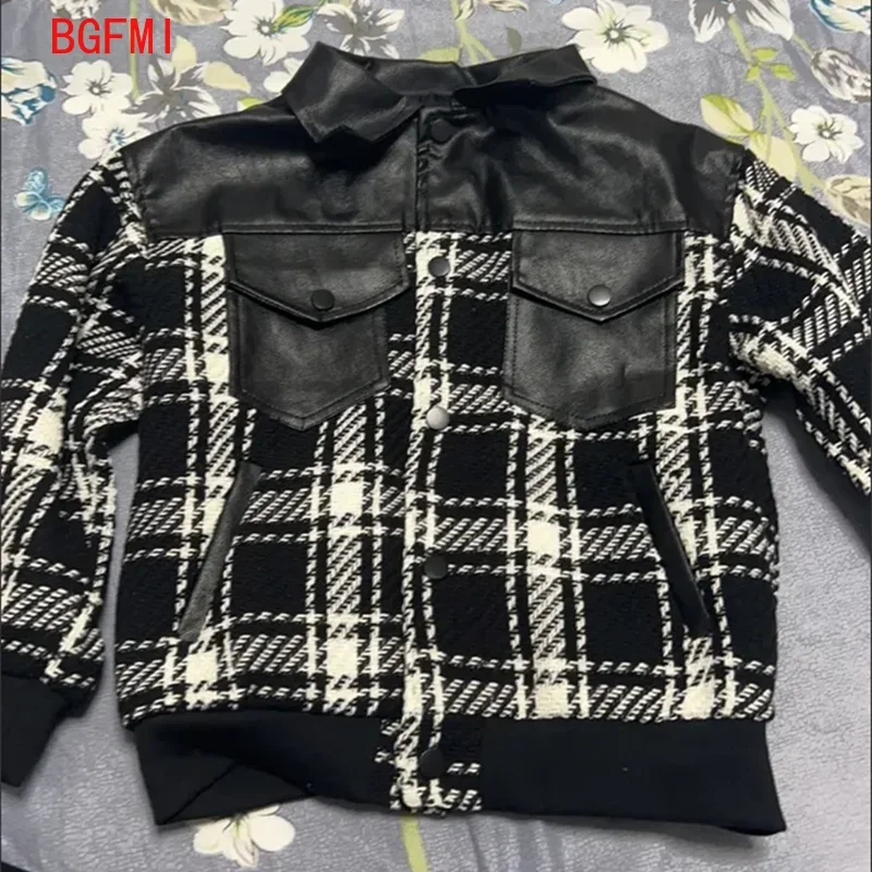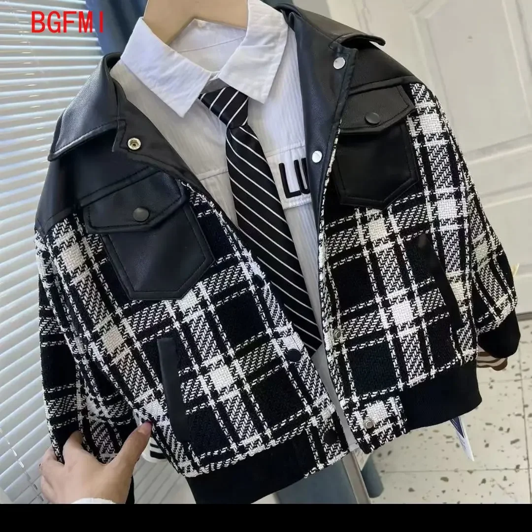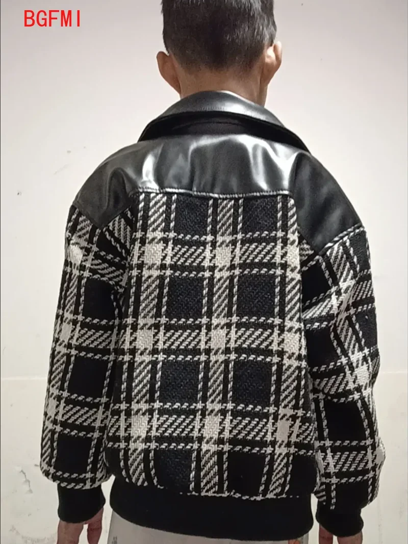 3-12Y Nuovo di Alta Qualità Adolescenti Ragazzi Cappotto Casual Coreano di Lana e PU Patchwork Giubbotti Neonate Top capretto Giacca monopetto