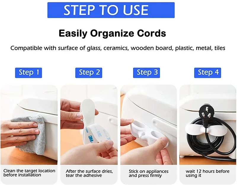 【Large Applicazione】Il organizer per cavi può essere utilizzato ovunque I cavi per apparecchi elettrici devono essere negoziati, come uffici, camere da letto, aule e altro. È adatto a molti tipi di materiali, come legno, vetro, metallo, plastica, pelle, piastrelle, carta da parati e altre superfici lisce e pulite.