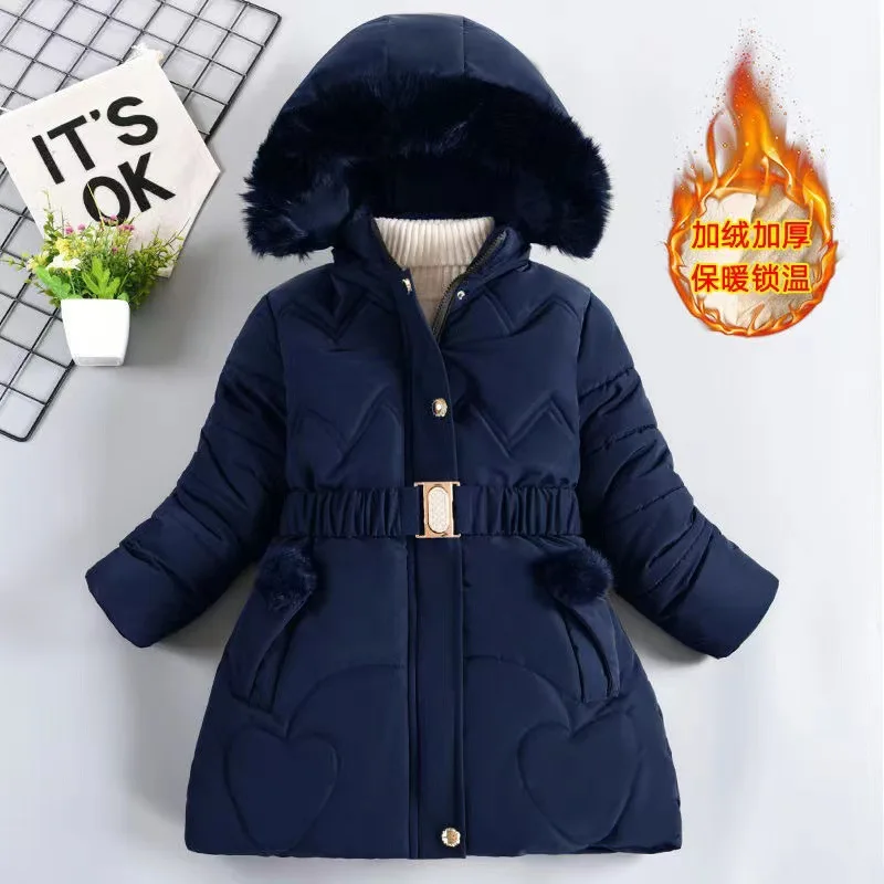 3 4 5 6 8 10 Years Winter Girls Coat Keep Warm Thicken Kids Jacket Hooded Zipper Fur Collar Princess Outerwear Children Clothing