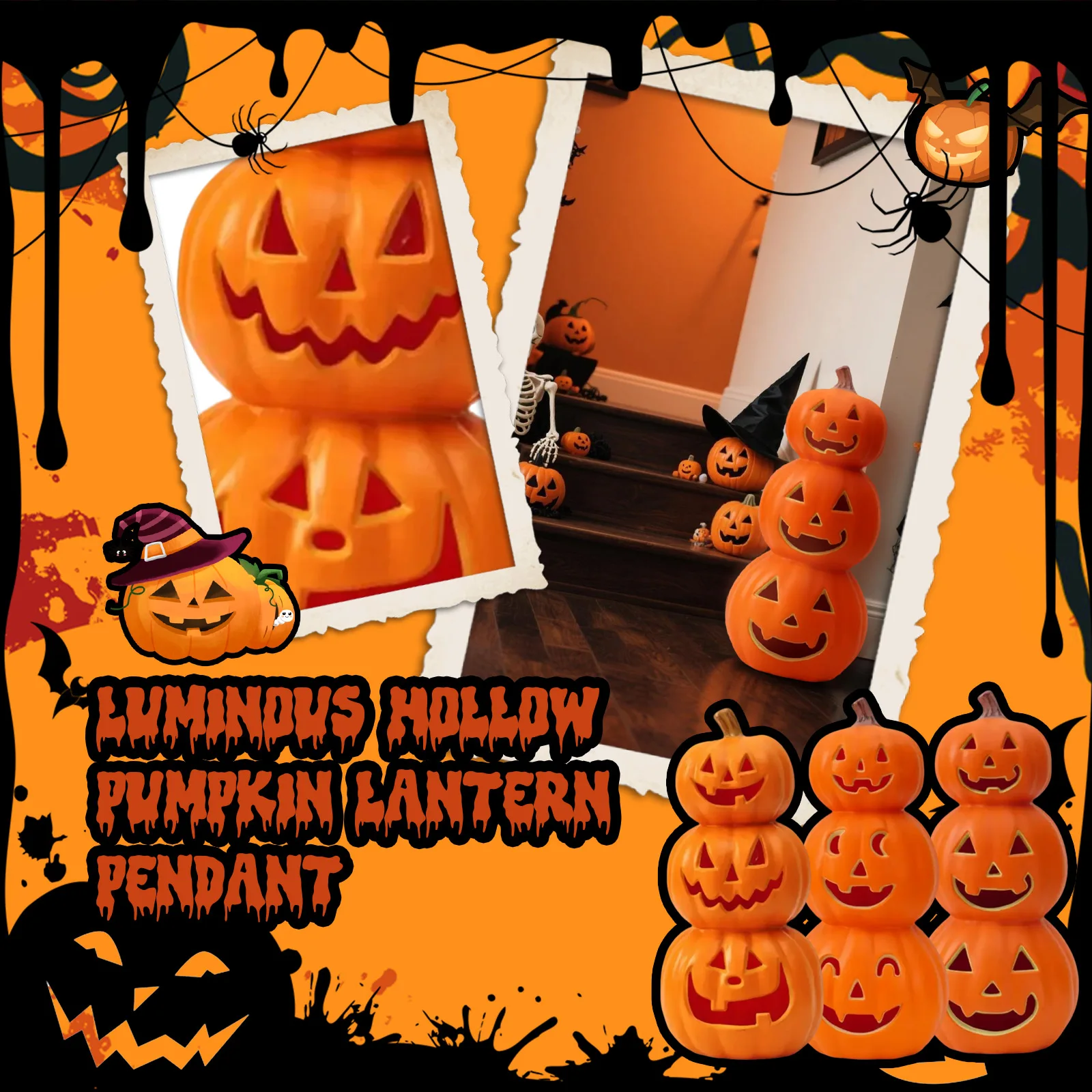 Ornamenti di zucca cava luminosa di Halloween da 16 pollici Decorazione di layout di scena di finestra del centro commerciale Puntelli Ornamenti di luce notturna di zucca