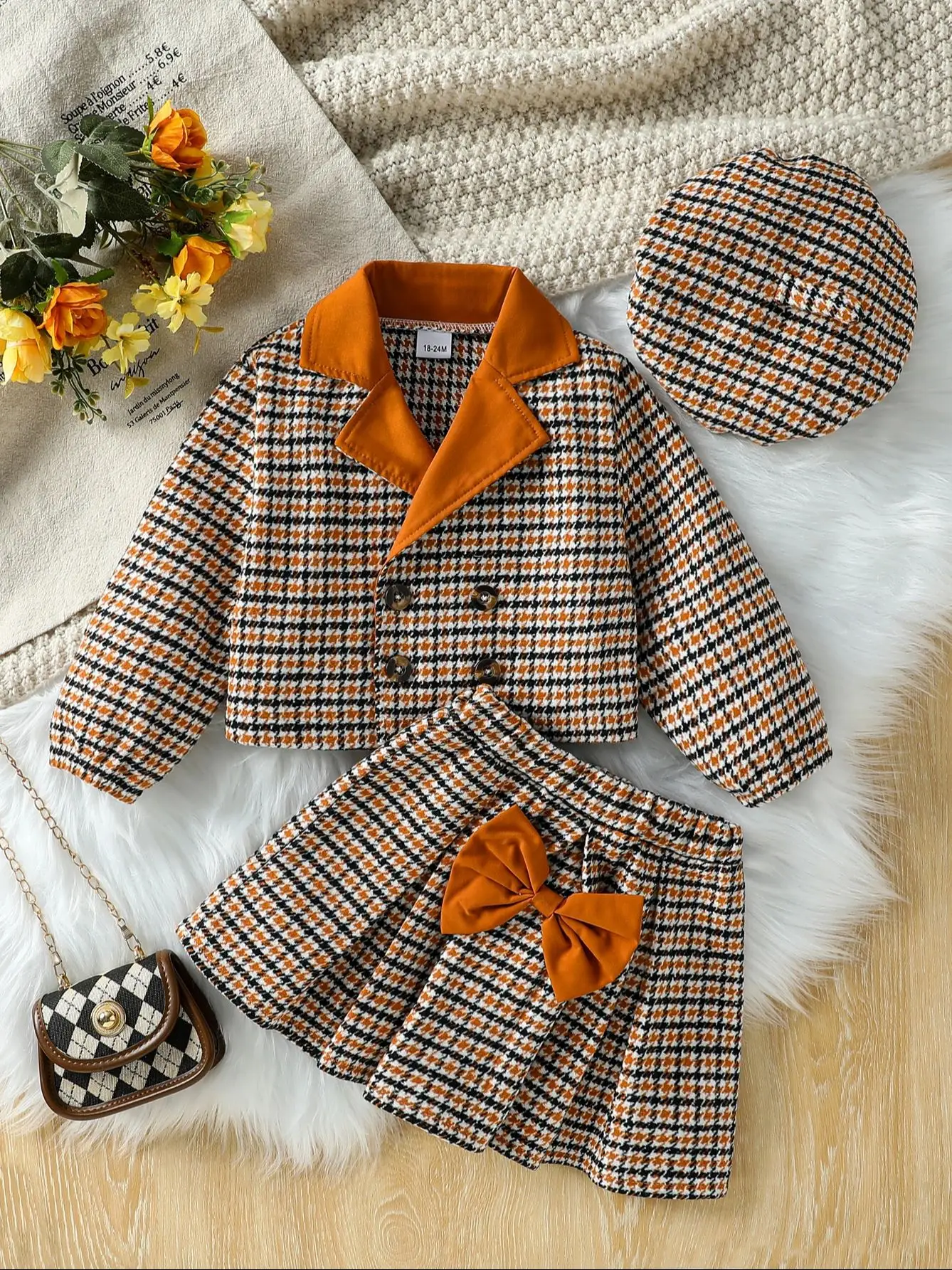 3 pezzi bambini ragazze abbigliamento autunno/inverno nuovo vestito coreano ragazze temperamento giacca e gonna scozzese set + cappello moda bambino per 1-6 anni