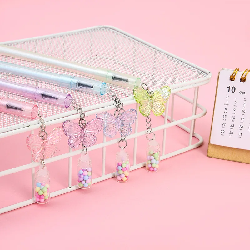 3 pezzi carino farfalla deriva bottiglia nappa decorazione penna gel cancellabile ragazza regalo di cancelleria penna da scrittura da 0,5 mm materiale scolastico Kawaii