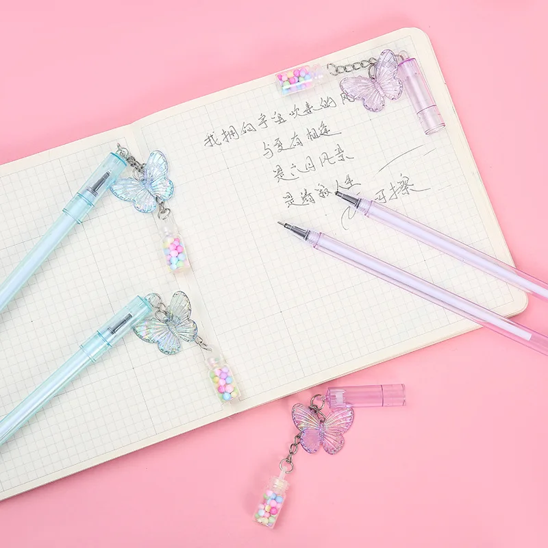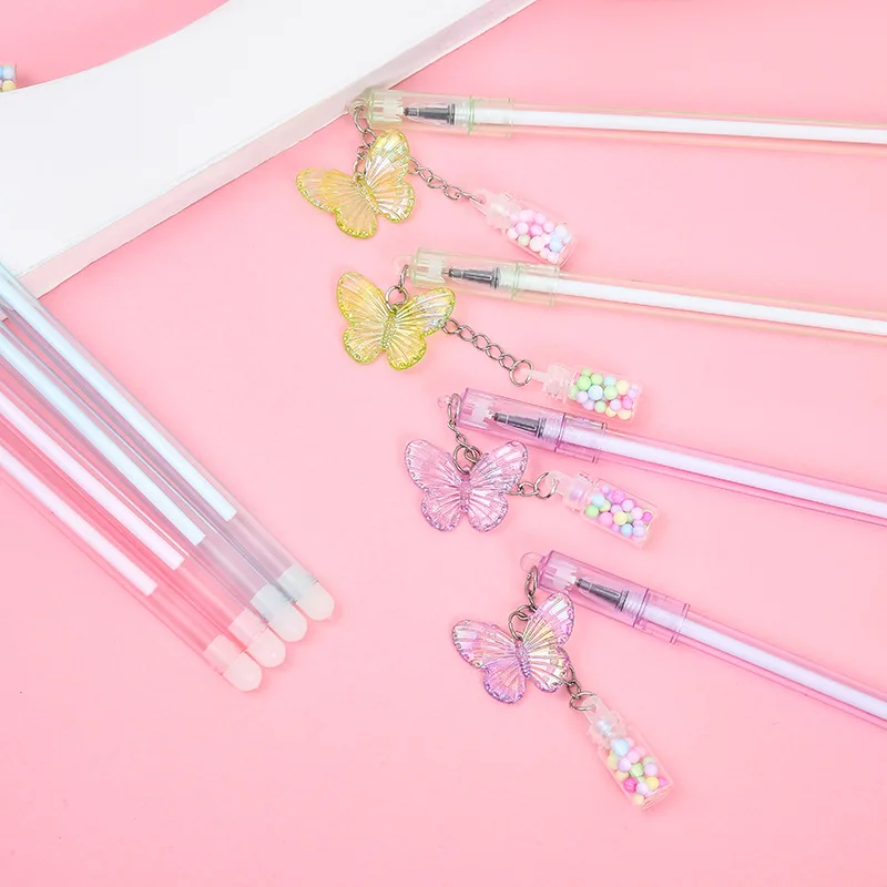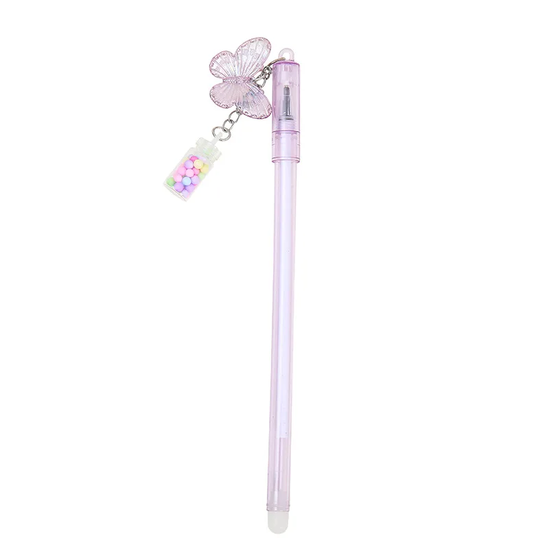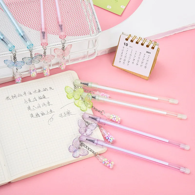 3 pezzi carino farfalla deriva bottiglia nappa decorazione penna gel cancellabile ragazza regalo di cancelleria penna da scrittura da 0,5 mm materiale scolastico Kawaii