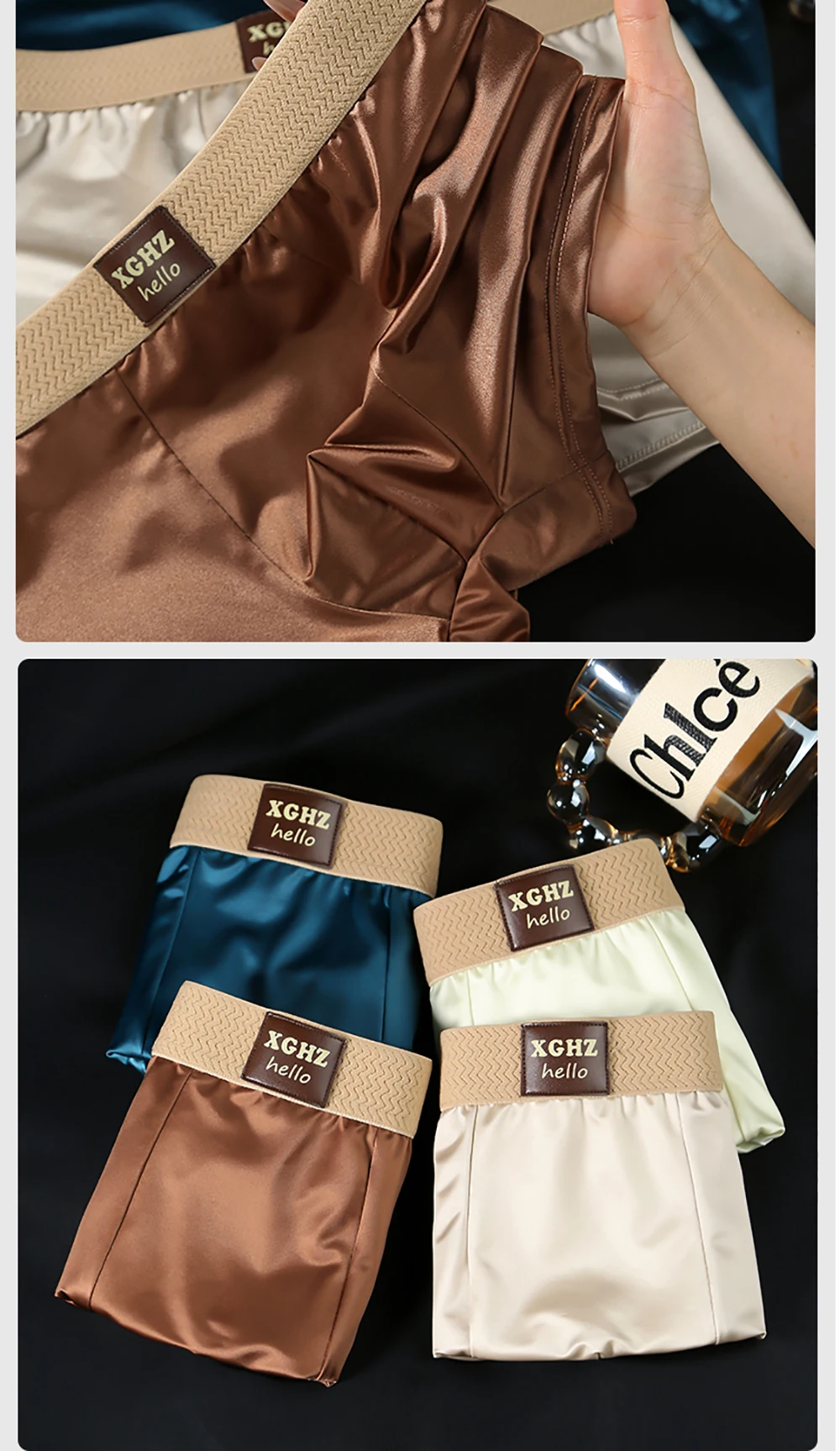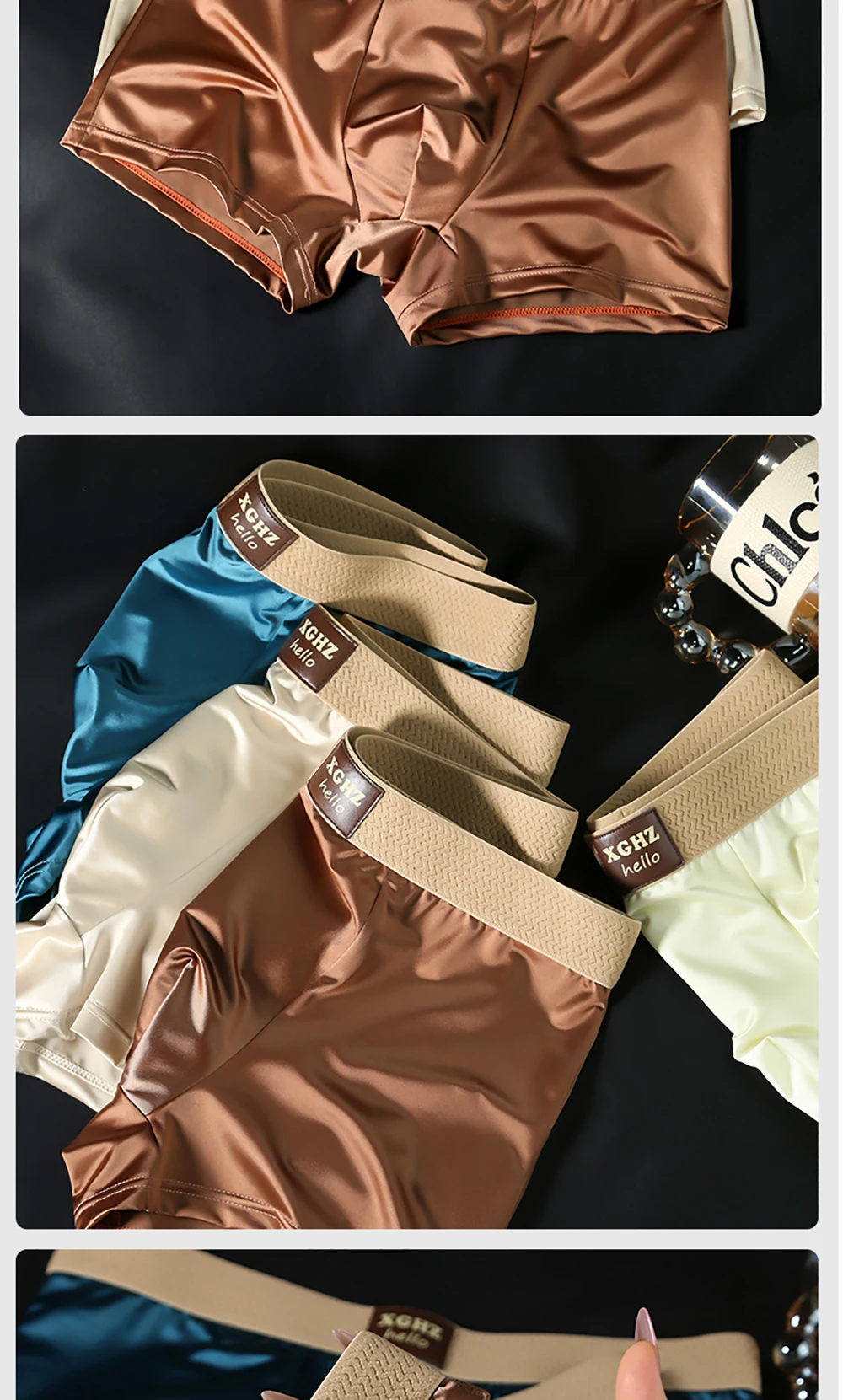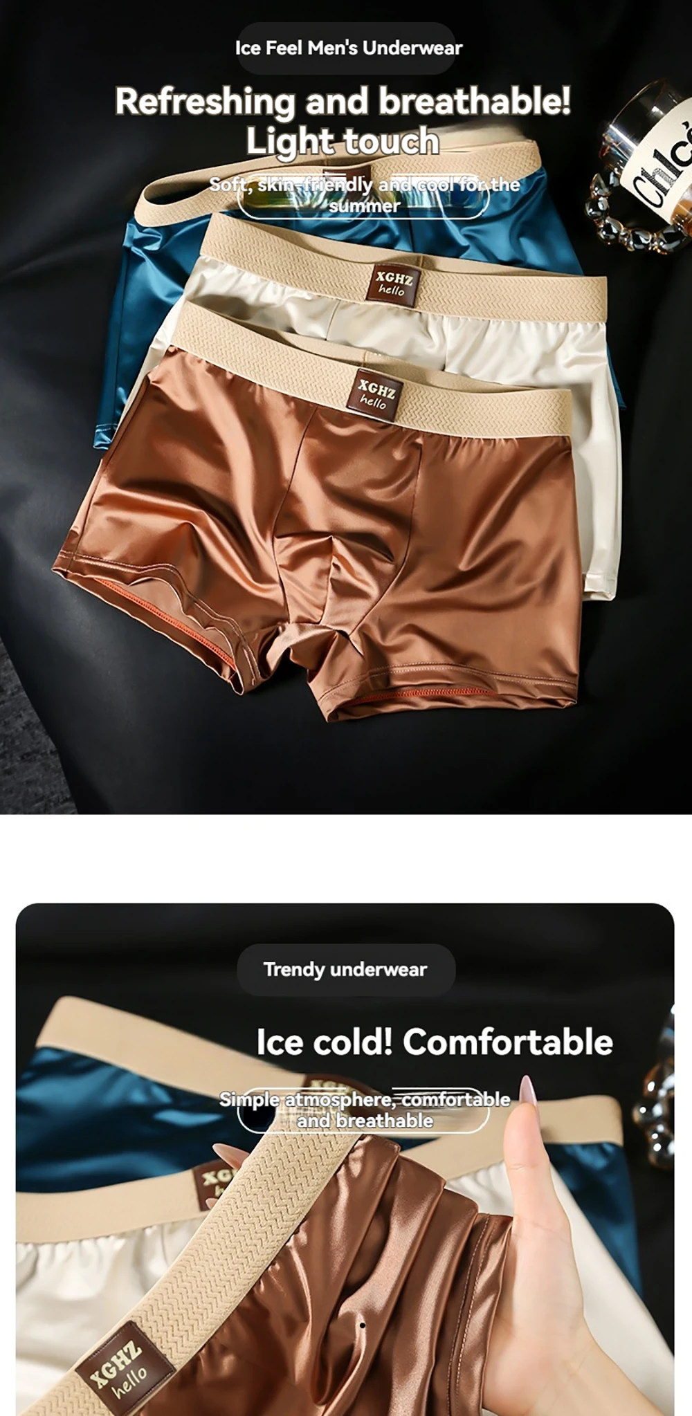 3 pz/pacco di Lusso di Seta del Ghiaccio Raso-like Mutandine da Uomo Super Morbido Boxer Homme Fresco Traspirante Comodo Uomo Biancheria Intima Mutande