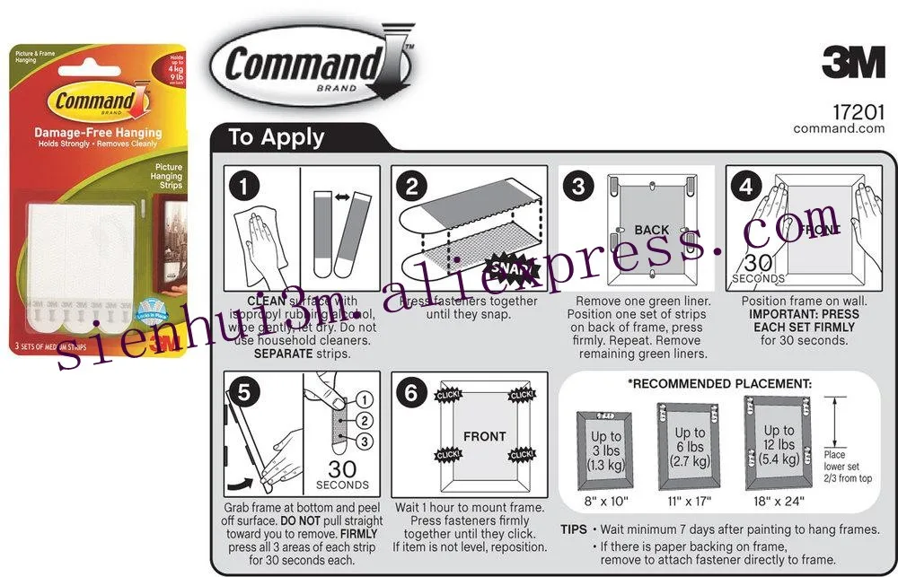 Le strisce per appendere quadri Command si tengono fortemente su tutta la gamma di superfici, inclusa vernice, legno e piastrelle, ma non è adatte per l’uso su superfici carta da parati o per appendere l’antiquariato o altri oggetti valiosiabili o irreplaceibili.