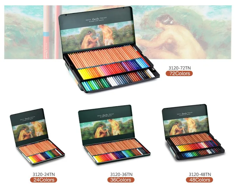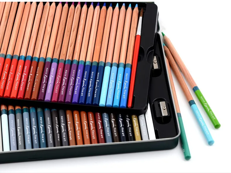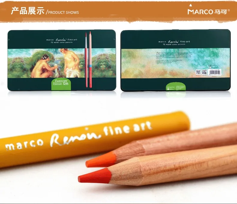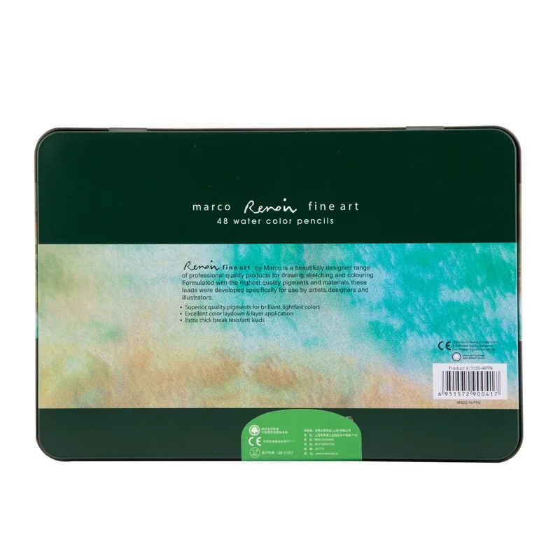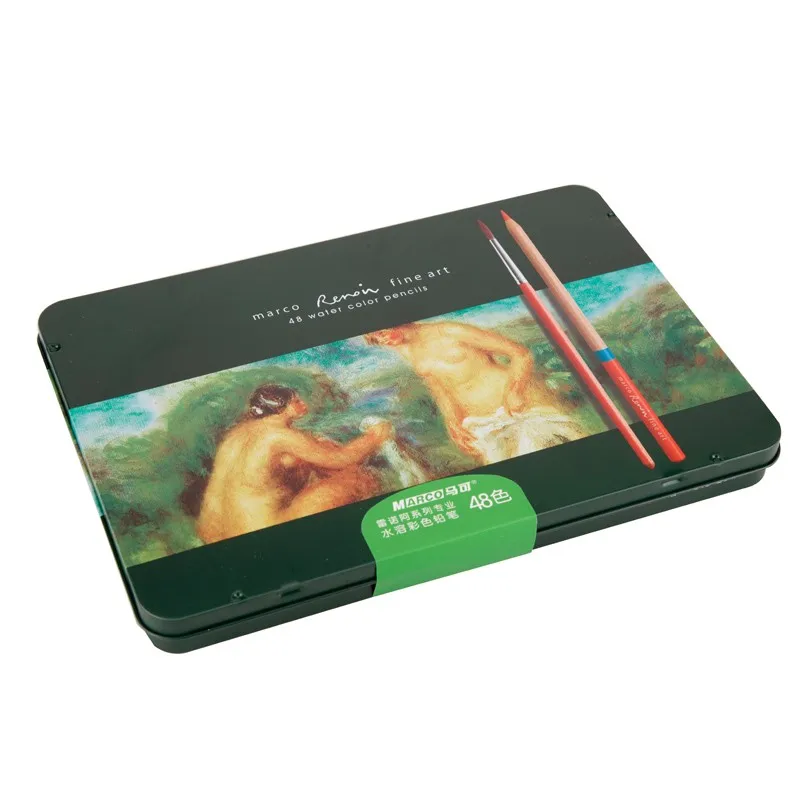 36/48/72/100 ColorsMarco Renoir Matite ad acquerello Scatola di ferro non tossico con pennello Colorazione Disegno Scuola di cancelleria Rifornimenti d’arte