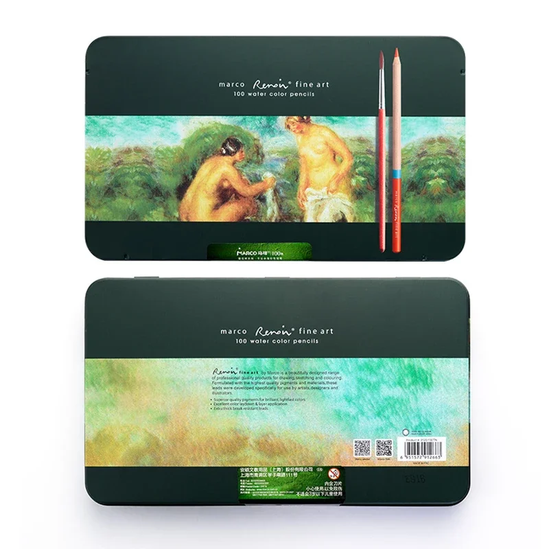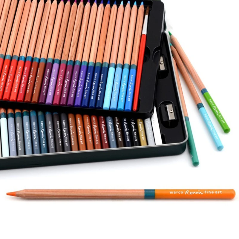 36/48/72/100 ColorsMarco Renoir Matite ad acquerello Scatola di ferro non tossico con pennello Colorazione Disegno Scuola di cancelleria Rifornimenti d’arte