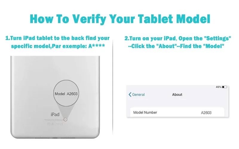 1. Girare il tablet iPad per la schiena trova il tuo modello specifico, par esempi: un****