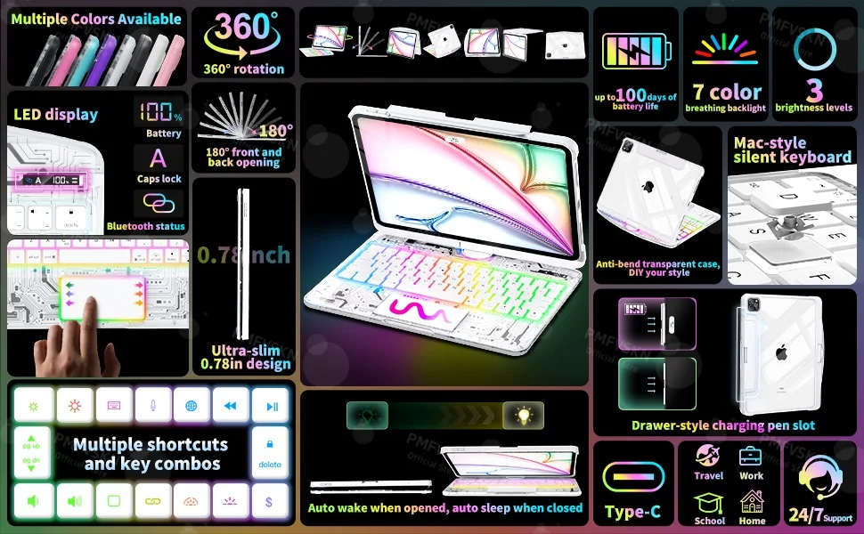 【360° Girevole per una flessibilità massima】Construito con un 360 ingegnerizzato con precisione° cerniera, questo caso offre regolare le regolazioni dell’angolo per digitare, schizzi o chiamate video, garantisce prestazioni affidabili per l’uso tutto il giorno.