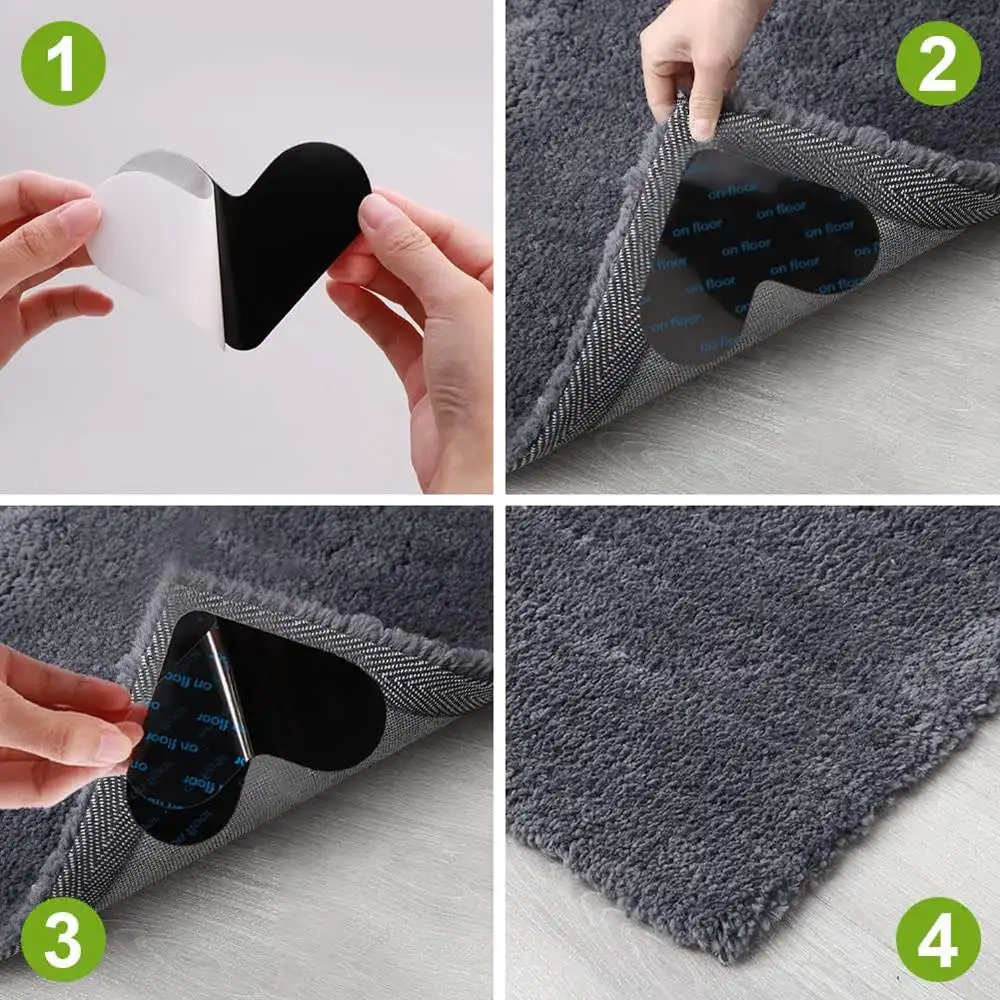 4/12/24/32 pezzi adesivo per tappeti antiscivolo a doppia faccia con pinza per tappeti a forma di cuore, nastro angolare per tappeti lavabili e riutilizzabili