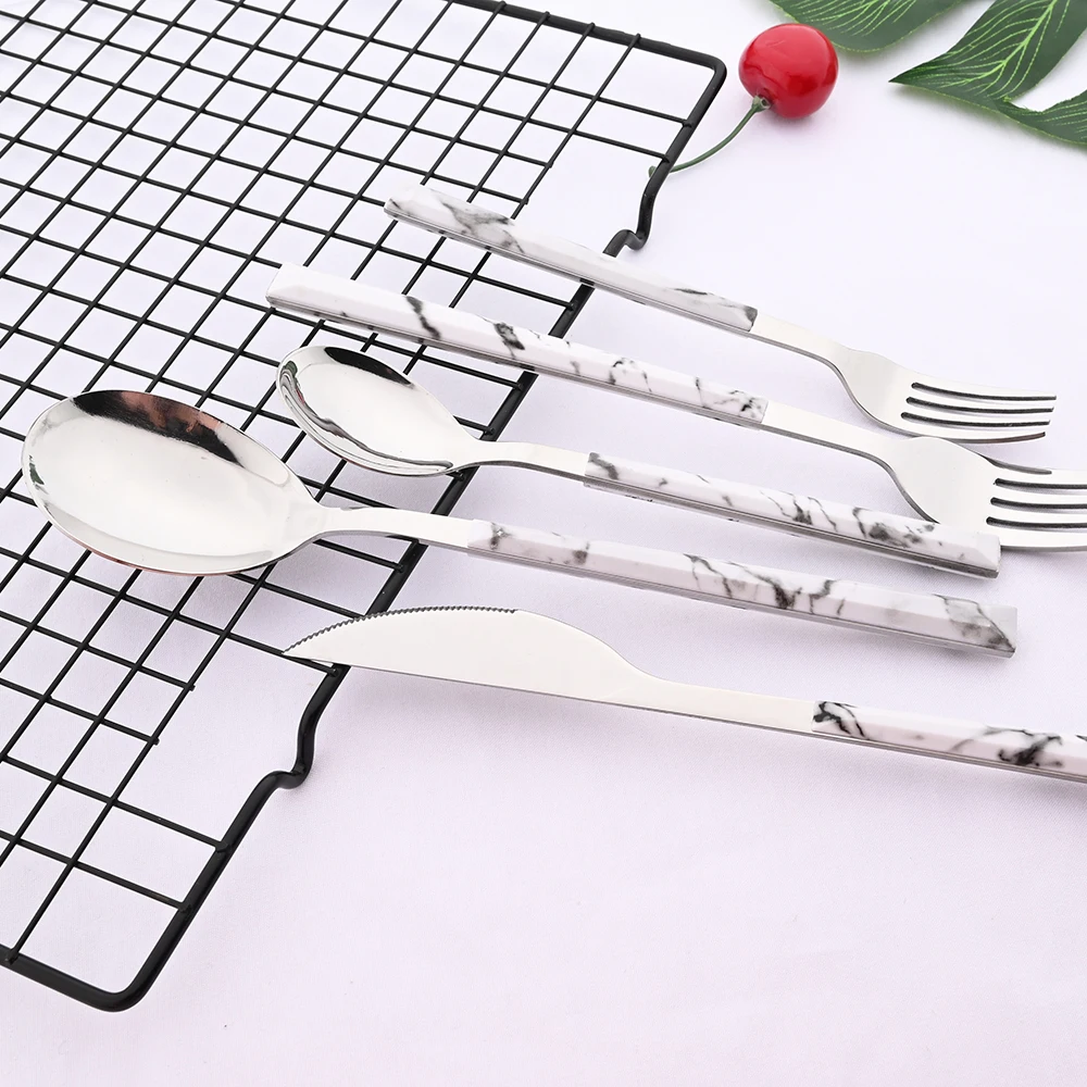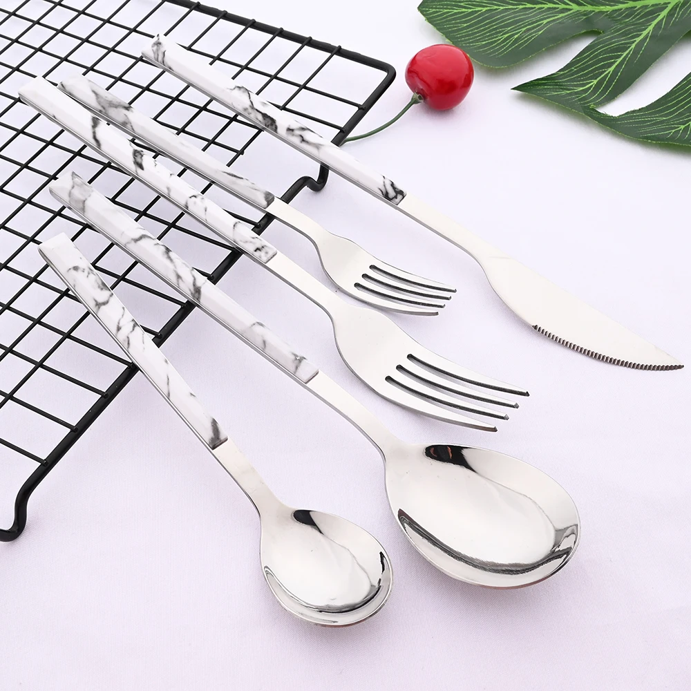 4/16 pz stoviglie in acciaio inox marmorizzazione modello posate posate coltello cucchiaio forchetta cucchiaino forchetta cucina stoviglie per la casa