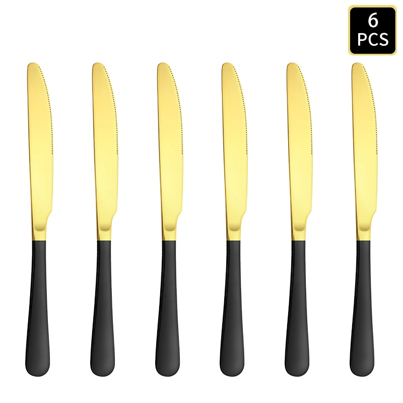 4/6/16/24 pezzi Posate in acciaio inossidabile oro e nero 1010 set di posate per la casa con manico rotondo, forchetta e cucchiaio