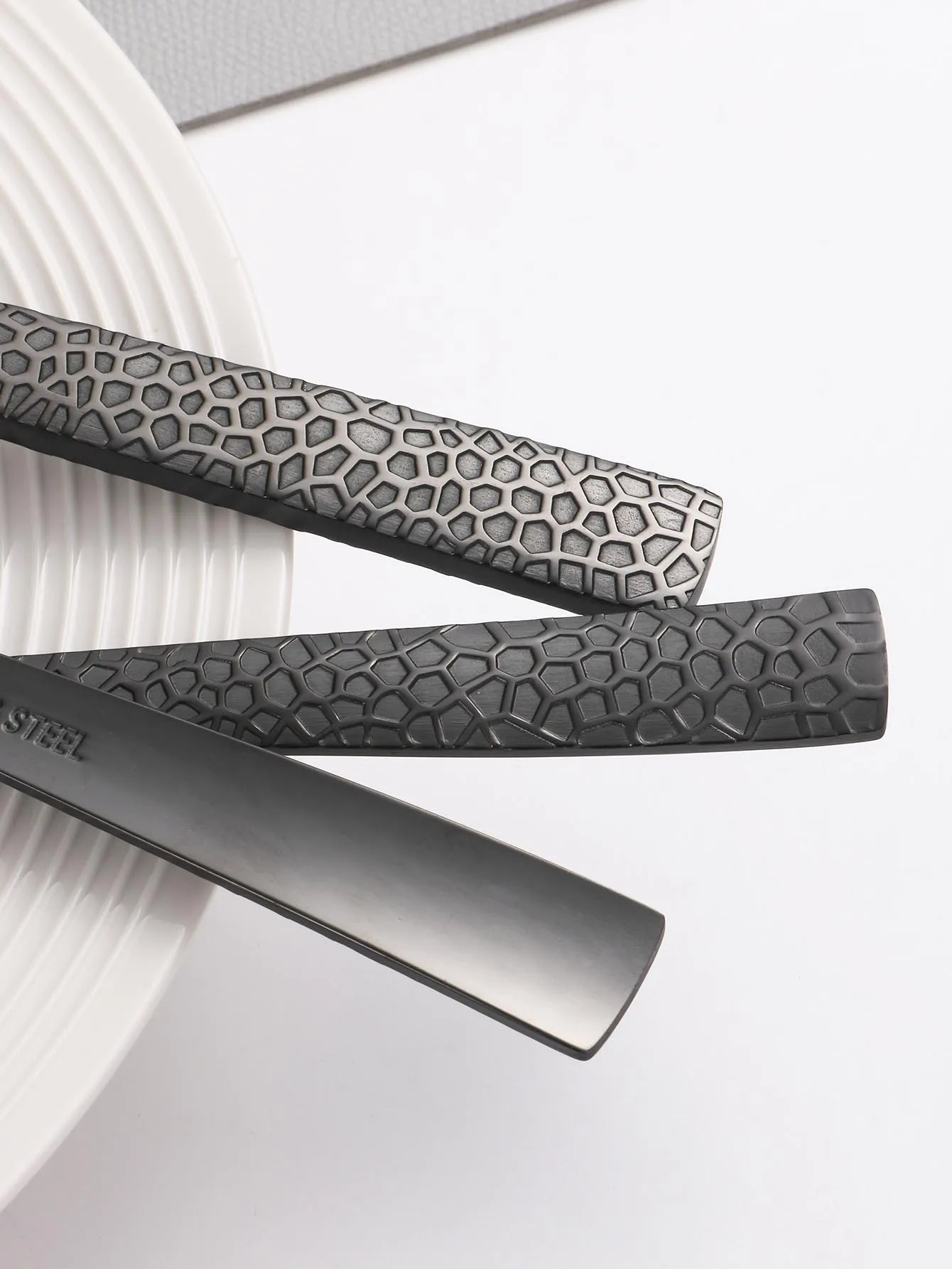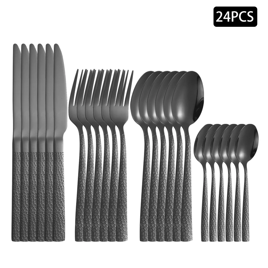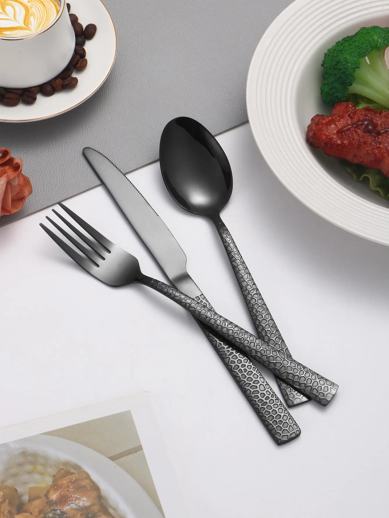 4/6/16/24 pezzi Set di posate nere in acciaio inossidabile Posate in pelle di serpente con manico quadrato Combinazione di coltelli, forchette e cucchiai per uso domestico
