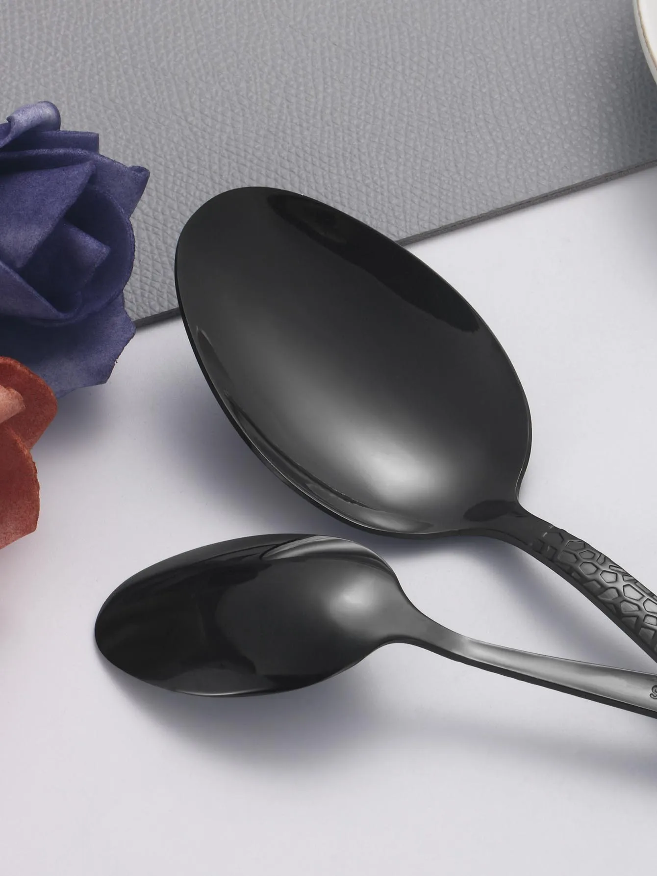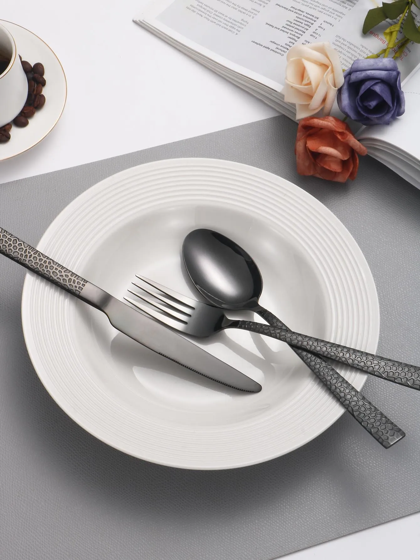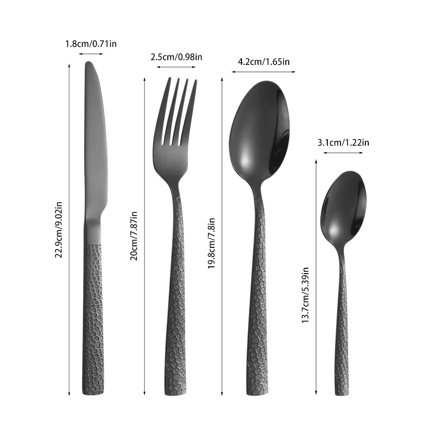 4/6/16/24 pezzi Set di posate nere in acciaio inossidabile Posate in pelle di serpente con manico quadrato Combinazione di coltelli, forchette e cucchiai per uso domestico