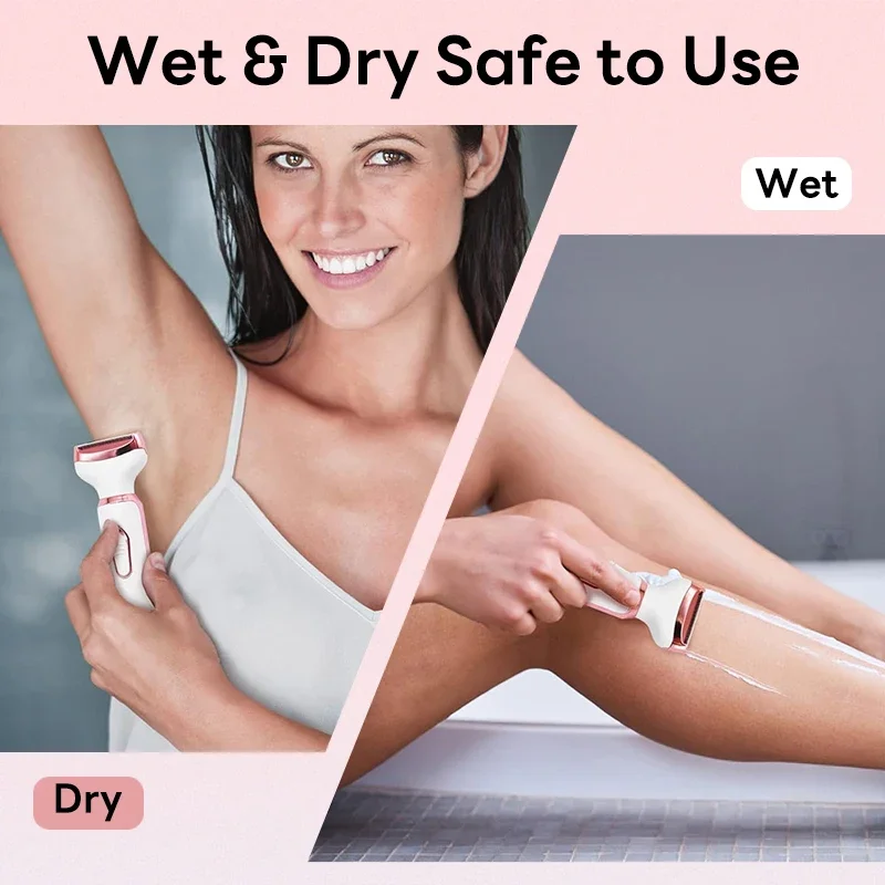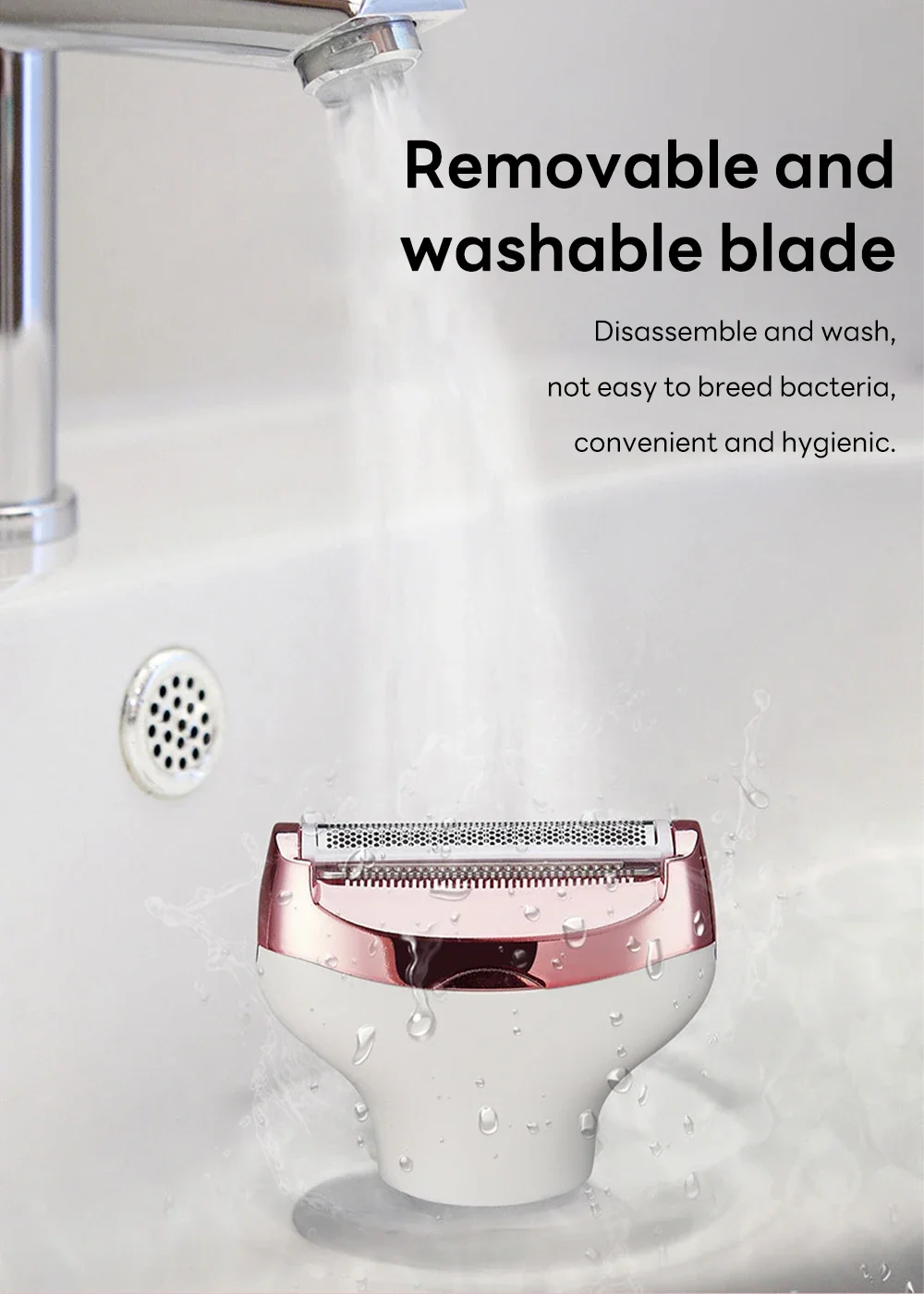 The blade of womens electric razor has super waterproof performance and can be used both dry or wet. You can use it when washing your face, or in the bath. The detachable razor head design and long cleaning brush make this hair trimmer easy to clean.