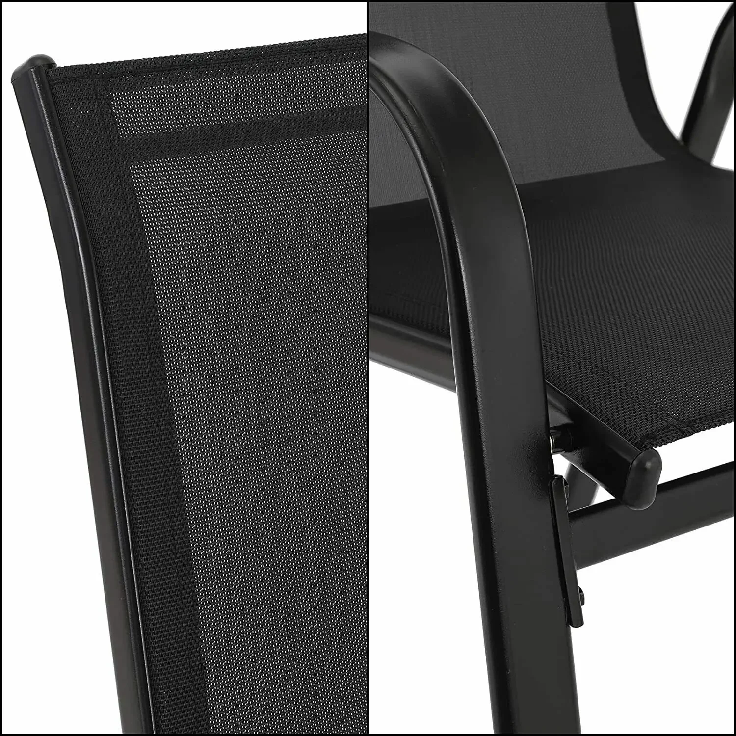 4 pezzi sedie da giardino in acciaio-ferro + tessuto Teslin pieghevole sedia da balcone con schienale alto sedia da campeggio posti a sedere all’aperto gruppo nero