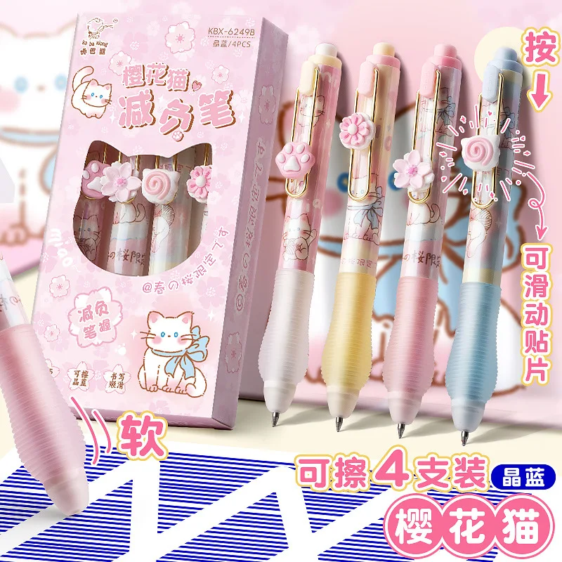 4 pz/set Simpatico Cartone Animato Cancellabile Penna Gel di Cancelleria per la Ragazza Kawaii Gattino Panda Penna di Scrittura 0.5mm Nero Blu Inchiostro Penna di Colore
