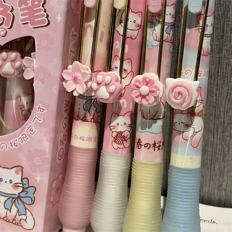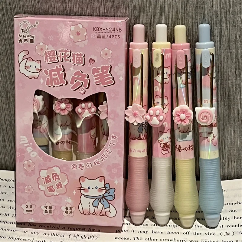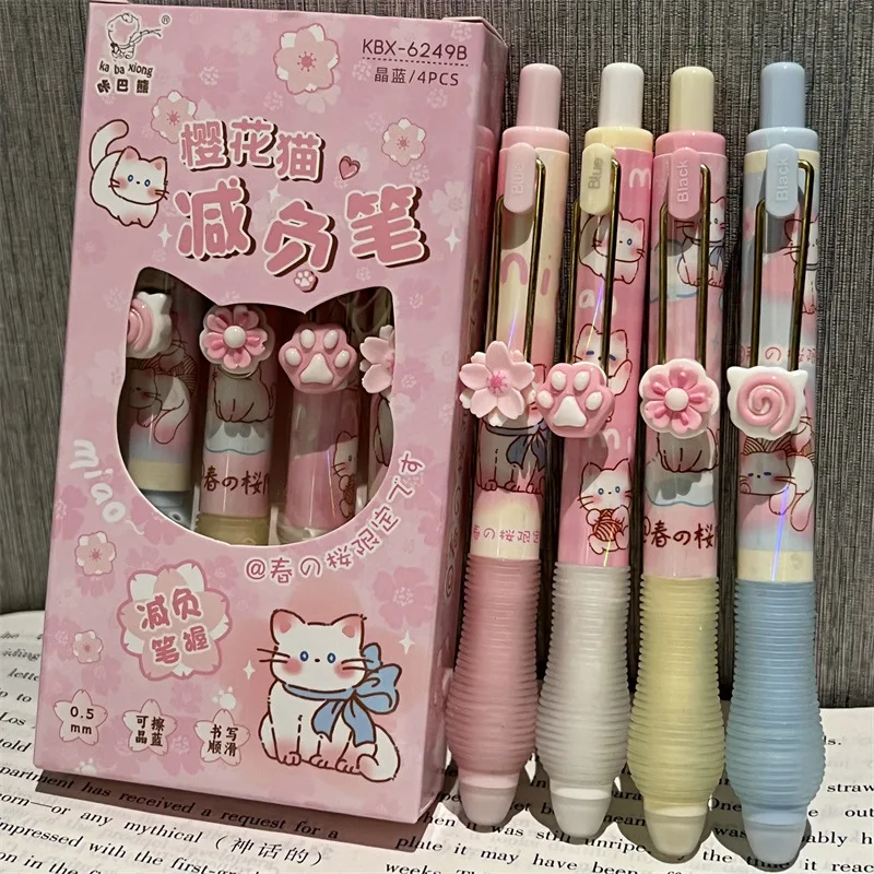 4 pz/set Simpatico Cartone Animato Cancellabile Penna Gel di Cancelleria per la Ragazza Kawaii Gattino Panda Penna di Scrittura 0.5mm Nero Blu Inchiostro Penna di Colore