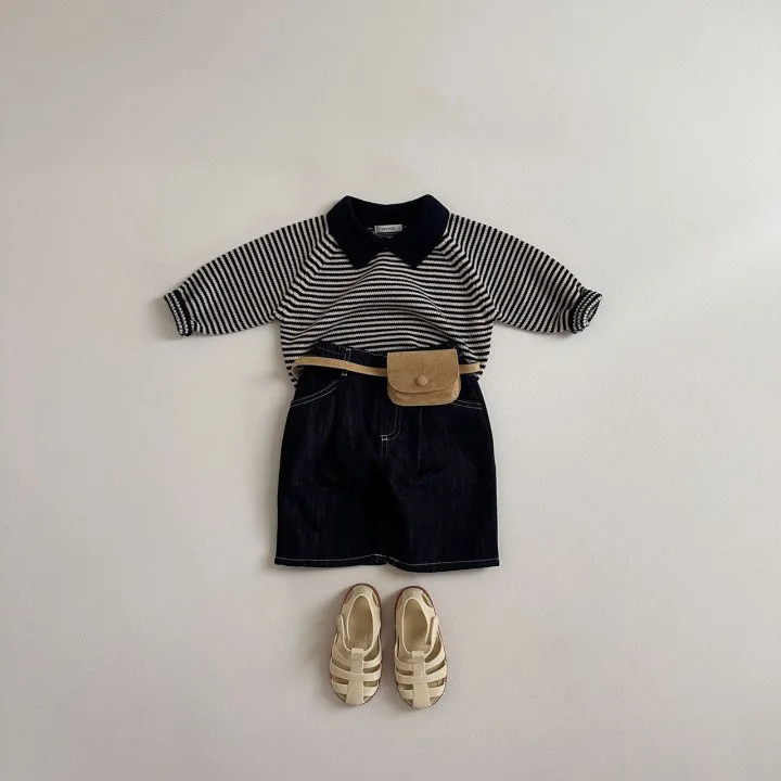 1 recensione per 4155 Maglione coreano per bambini Autunno Nuovo risvolto a righe Maglione lavorato a maglia per neonato 1-7 anni Pullover per bambini Top