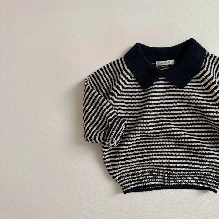 4155 Maglione coreano per bambini Autunno Nuovo risvolto a righe Maglione lavorato a maglia per neonato 1-7 anni Pullover per bambini Top