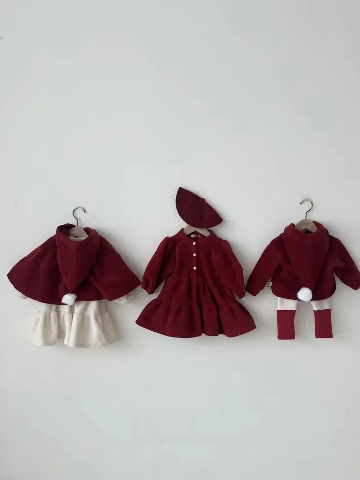 4237C capispalla mantello bambino 2022 inverno primavera bambino mantello rosso per ragazzi e ragazze natale capodanno mantello con cappuccio scialle