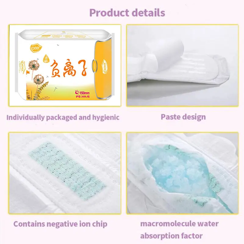 Assorbenti igienici mestruali anionici da donna da 24 pezzi/3 confezioni, ultrasottili, asciutti e traspiranti.Prodotti per assorbenti igienici anionici in puro cotone