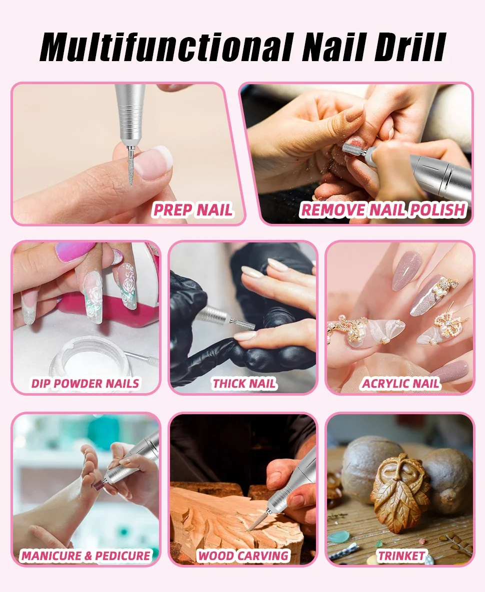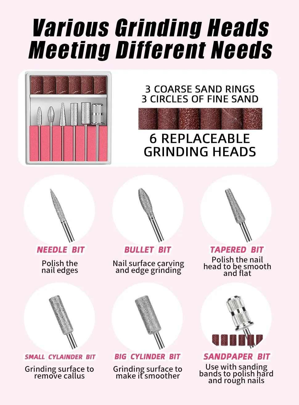 【Strumento per manicure versatile】: lima per unghie elettrica può essere utilizzata per manicure, pedicure, lucidatura, rimozione eccesso di cuticole, intaglio, incisione, routing, molatura, affilatura, levigatura, taglio, foratura o bellezza delle unghie degli animali domestici.Prendendo acrilico e smalto gel con facilità.Può anche essere utilizzato su piccoli articoli in pelle, intaglio di legno e pareti, punzonatura e levigatura.Buona scelta sia per uso domestico che in salone.Regalo Ideale: Il miglior regalo per le donne che è un amante del nail art.
