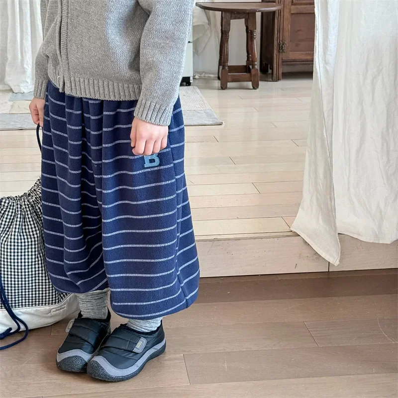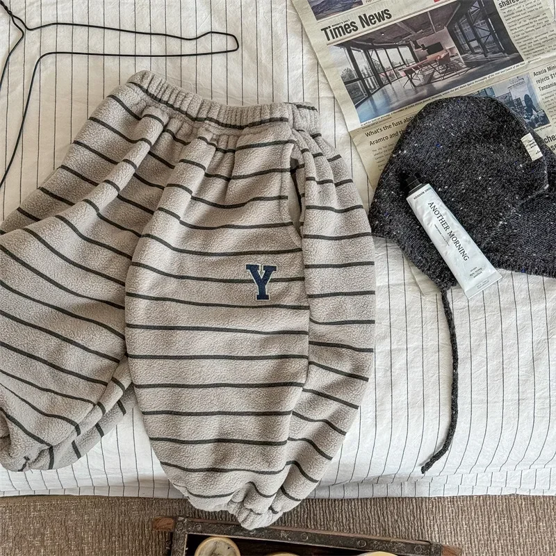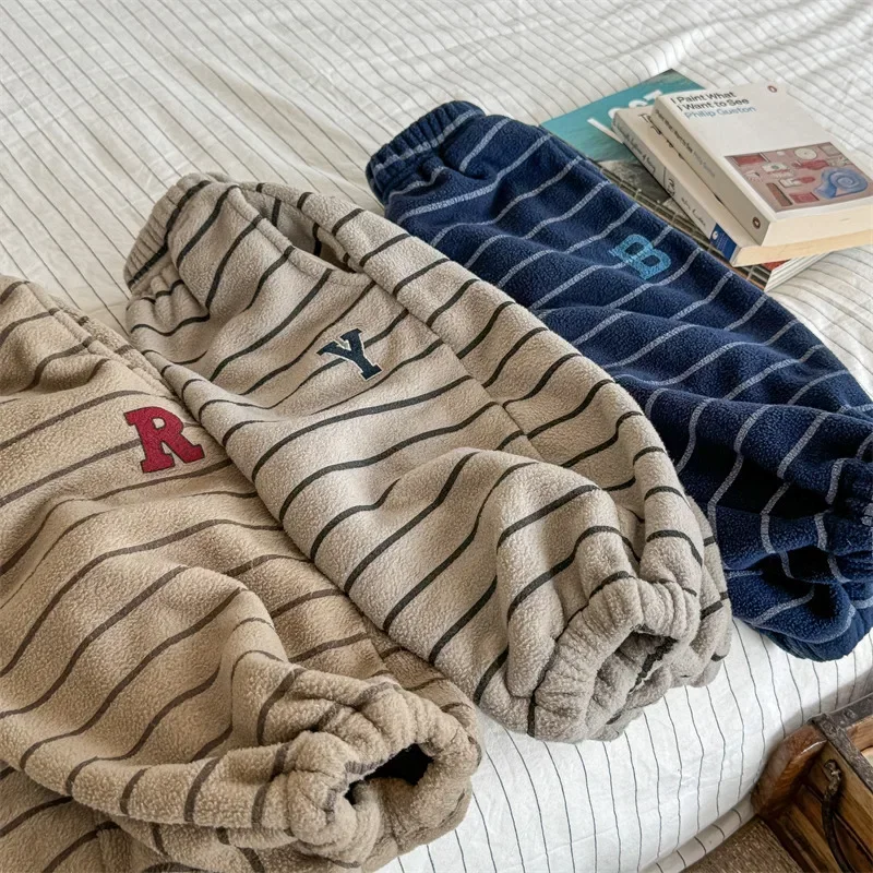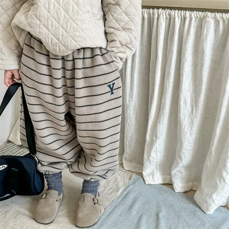 4798 Pantaloni per bambini 2024 Autunno e inverno Nuovi pantaloni da neonato in pile Pantaloni casual a righe Pantaloni caldi