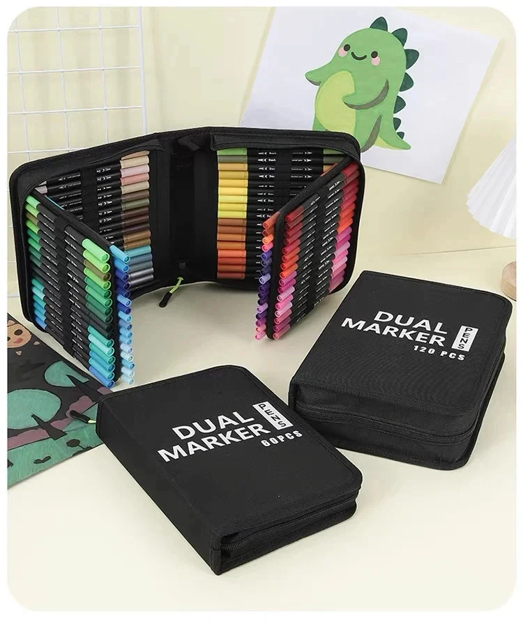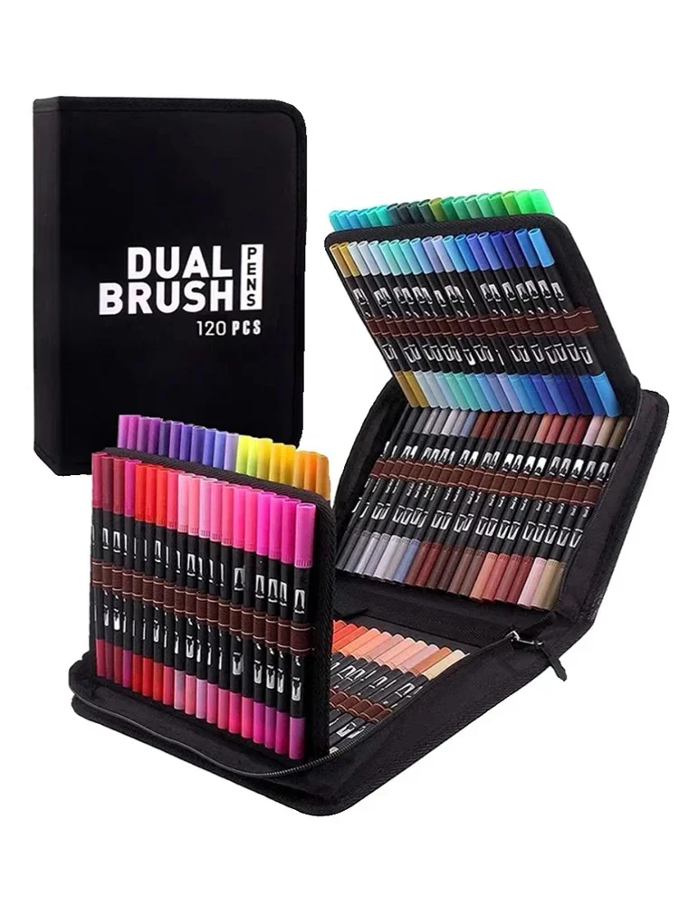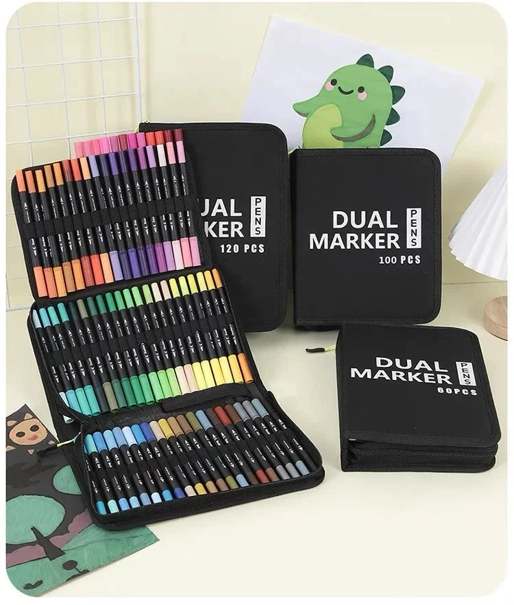 48/60/72/100/120 colori Pennarelli a doppia punta Pennarelli Acquerello FineLiner Manga Accessori artistici Forniture artistiche Disegno di cancelleria