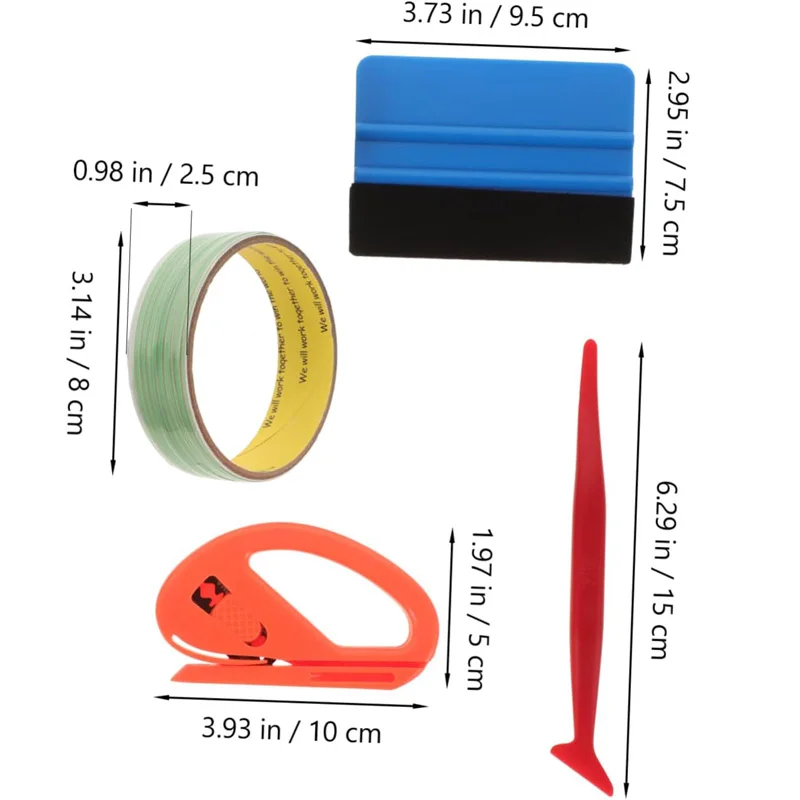 Caratteristiche: 1.Strumenti per l’avvolgimento dell’auto: il kit di rivestimento in vinile ti aiuterà a completare i lavori di avvolgimento dell’auto e a progettare grafica sull’auto in modo sicuro. 2.Nastro da taglio: lunghezza 5 m/10 m/50 m.taglio senza lama, assicurati che la vernice dell’auto sia sicura quando progetti grafici come strisce da corsa o motivi complicati. 3.Spatola in feltro di vinile: la spatola avvolgente con protezione in feltro può rimuovere le bolle senza lasciare graffi, migliorando l’adesività tra il vinile e la superficie della vernice dell’auto. 4.Taglierina per coltelli per avvolgimento in vinile: il coltello da 9 mm taglierà il vinile e la pellicola in eccesso sui bordi dell’auto per avvolgere completamente i bordi.Puoi tranquillamente tagliare il rotolo di vinile con il taglierino di sicurezza del rasoio. 5.Micro tergipavimento flessibile: il mini tergipavimento rosso è progettato per l’avvolgimento dei bordi ed è molto adatto per lavori di elaborazione di dettagli complessi.Può essere utilizzato per decalcomanie, rimuovere bolle e lavorare in spazi ristretti. Utilizzo: – Nastro da taglio: tira un filamento forte sul nastro e può tagliare il vinile per ottenere i motivi necessari.Queste linee di finitura con taglio in vinile mantengono la vernice della tua auto al sicuro. – Spatola in feltro blu: far scorrere il raschietto in vinile per far uscire l’aria ed eliminare le bolle.Attaccato con feltro morbido, riduce al minimo i graffi e riduce i danni. – Coltello in vinile retrattile: il bloccaggio della lama assicura un taglio stabile.Il robusto coltello da 9 mm consente un taglio preciso quando si taglia la pellicola in vinile in eccesso. – Sostituzione della lama da 9 mm: le lame da 9 mm pretagliate possono offrirti uno stato di coltello più affilato a lungo, prevenendo una pellicola vinilica irregolare a causa del coltello smussato. Come utilizzare il nastro da taglio: Passaggio 1 Applica il nastro senza coltello su un pannello, organizzando il nastro nella forma del disegno che desideri tagliare. Passaggio 2 Applicare il vinile sulla parte superiore del nastro senza coltello, levigando eventuali pieghe e bolle d’aria. Passaggio 3 Tirare l’estremità del nastro per liberare il filamento di taglio all’interno (sembra una lunghezza di filo). Passaggio 4 Tirare del filamento delicatamente per tagliare il vinile.Quindi rimuovi il vinile in eccesso e goditi il tuo design. SUGGERIMENTI: La linea di taglio della pellicola non è consigliata per la cromatura o altre pellicole metallizzate o strutturate.E la pellicola deve essere mantenuta asciutta, pulita e lucida.(L’acqua, la polvere e la superficie opaca influenzeranno l’aderenza.) Il pacchetto include: 1-9 pezzi opzionali (controlla come immagine prima di acquistarlo!!!) Nota: 1.Si prega di consentire un errore di 1-3 cm a causa della misurazione manuale.assicurati che non ti dispiaccia prima di fare un’offerta. 2.A causa della differenza tra diversi monitor, l’immagine potrebbe non riflettere il colore effettivo dell’articolo. Grazie!