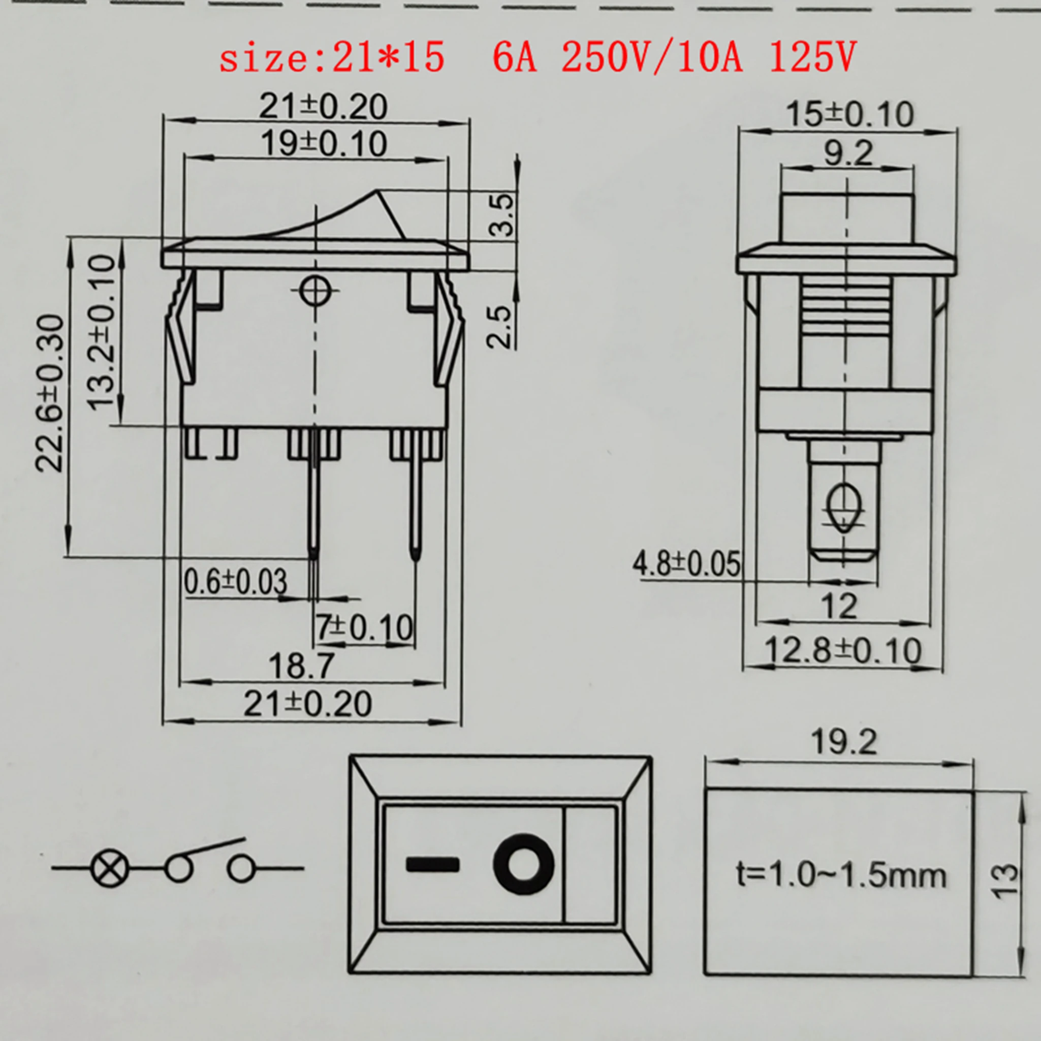 5/10 pz/lotto KCD101 2 Spille 21x15mm Mini Interruttore di Pulsante SPST 6A 250V AC Snap-in On/Off Barca Interruttore A Bilanciere 10A 250V Interruttore Auto