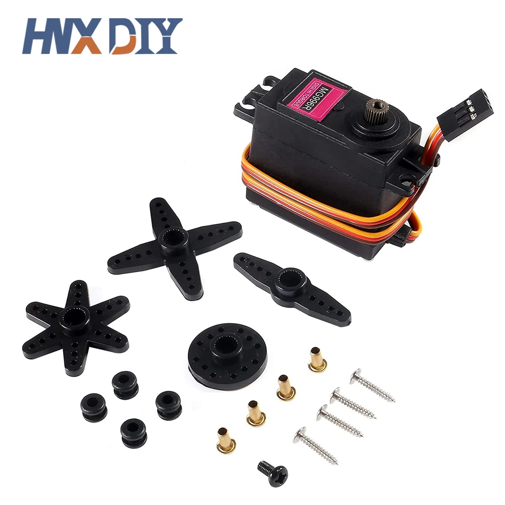 5/10 pz 13KG 15KG Servos Digitale MG995 MG996 MG996R Servo ingranaggio In Metallo per RC Auto Robot Elicottero Barca Per Arduino Kit Fai Da TeMG996RNuovissimo e di alta qualità.Alta velocità, stabile e resistente agli urti.Ingranaggio in metallo e doppio cuscinetto a sfere Colore: nero Nuovissimo e di alta qualità.Alta velocità, stabile e resistente agli urti.Ingranaggio in metallo e doppio cuscinetto a sfereColore: neroCoppia di stallo: 13 kg/cm (4,8 V), 15 kg/cm (6,0 V).Velocità operativa: 0,17 sec/60¡ã (4,8 V senza carico), 0,14 sec/60¡ã (6,0 V senza carico)Tensione operativa: 4,8 – 7,2 V.Dimensioni: 40 mm x 19 mm x 43 mm.Contenuto della confezione: 1x sterzo con accessoriNota: lo scatto di luce e display diversi possono far sì che il colore dell’articolo nell’immagine sia leggermente diverso da quello reale.L’errore di misurazione consentito è di +/- 1-3 cm.MG995Specifica.Dimensioni: 40 mm x 19 mm x 43 mm.Velocità operativa: 0,17 secondi / 60 gradi (4,8 V senza carico).Velocità operativa: 0,13 secondi / 60 gradi (6,0 V senza carico).Coppia di stallo: 9 kg-cm (180,5 once-in) a 4,8 V.Coppia di stallo: 12 kg-cm (208,3 once-in) a 6 V.Tensione operativa: 4,8 – 7,2 VoltTipo di ingranaggio: tutti gli ingranaggi in metallo.Scatola originale: NO.Colore: nero.Cavo connettore: resistente, 11,81″ (300 mm)Caratteristiche:Ottimo per camion, barche, auto da corsa, elicotteri e aerei.Alimentazione: tramite adattatore esterno.Stabile e resistente agli urti.- Motore coreless – Ingranaggio in metallo – Doppio cuscinetto a sfere -Lunghezza cavo connettore 300 mmAngolo: rotazione continua del servo di 180 gradi