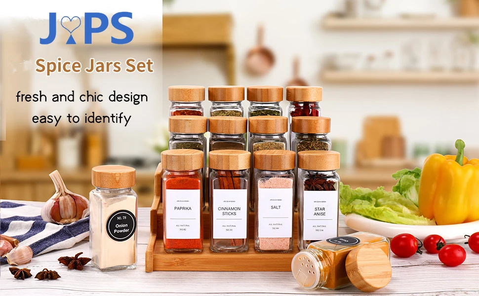 SHAKR LIDS: Per polvere e erbe, abbiamo un speciale coperchio shaker 2 in 1 per vasetti con 2 tipi di porte cospargere, uno è poroso per spezie macinate in polvere e uno ribaltamento per erbe e cereali. Inoltre, coperchi ermetici in bambù per mantenere le spezie fresche e secche.