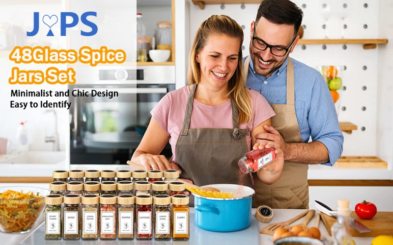 Barattoli DI VETRO PREMIUM SPESSO: questi barattoli di spezie sono realizzati in vetro addensato con forme quadrate di alta visibilità a alta trasparenza, puoi vedere i contenuti nei vasetti direttamente con cosa all’interno e quanto sinistra.