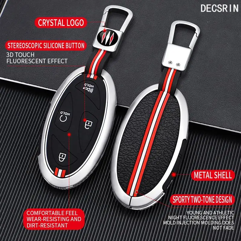 Specifiche:Materiale: lega di zinco + custodia in siliconeColore: argento, pistola (come mostrato nelle immagini sotto)Caratteristica:1.100% nuovo di zecca2. Aspetto alla moda, offre uno spettacolo accattivante e personalizza la tua chiave intelligente3. Con un comfort ultra elevato, sentirsi liscio4.Proteggi il guscio della custodia dai graffiIl pacchetto include:Solo una custodia per chiave dell’auto (la chiave dell’auto non è inclusa)