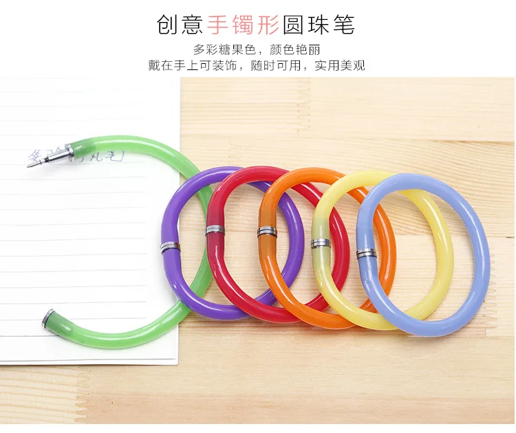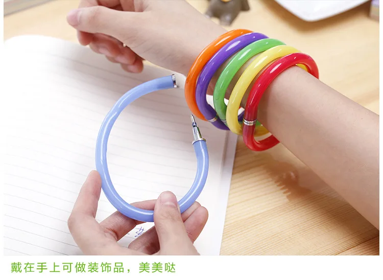 1pc Creative Kawaii Stationery Bangle Pen 0.7mm Blue Refill Ballpoint Pen Novel Flexible Ball Pens for Student School Supplies