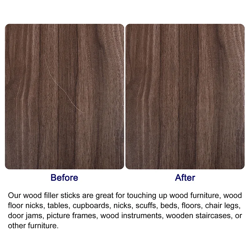 4. I bastoncini di riempimento eliminano rapidamente e facilmente i graffi, basta strofinare il bastoncino di cera nelle aree danneggiate per riempire i graffi. Sono lavorati bene con tutti i tipi di mobili.