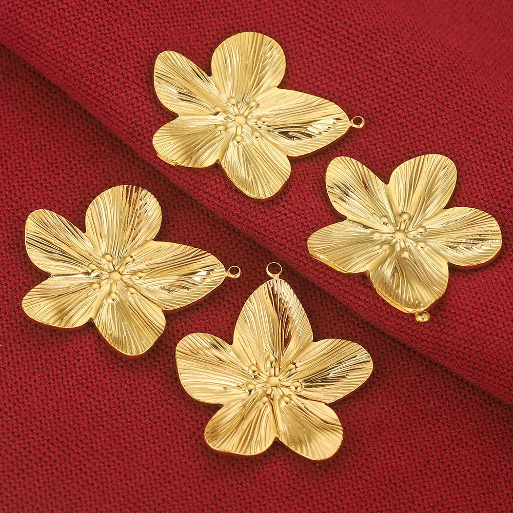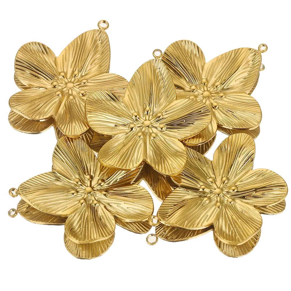 5 pz/lotto ciondoli in acciaio inossidabile grande fiore fascino PVD placcato oro metallo orecchino collana braccialetto creazione di gioielli all’ingrosso all’ingrosso