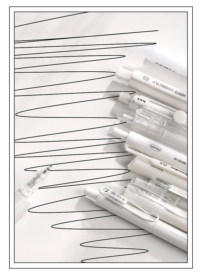 Informazioni:Materiale: plasticaQuantità: 6 pezzi/setPenna a inchiostro nero da 0,5 mm