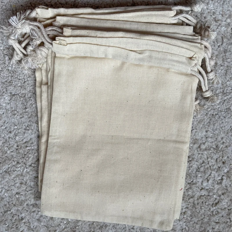 50/100 Pz/lotto 100% Cotone Con Coulisse Sacchetti di Immagazzinaggio per il Pacchetto Regalo Festa Di Natale Artigianato di Nozze Imballaggio Sacchetti Pianura