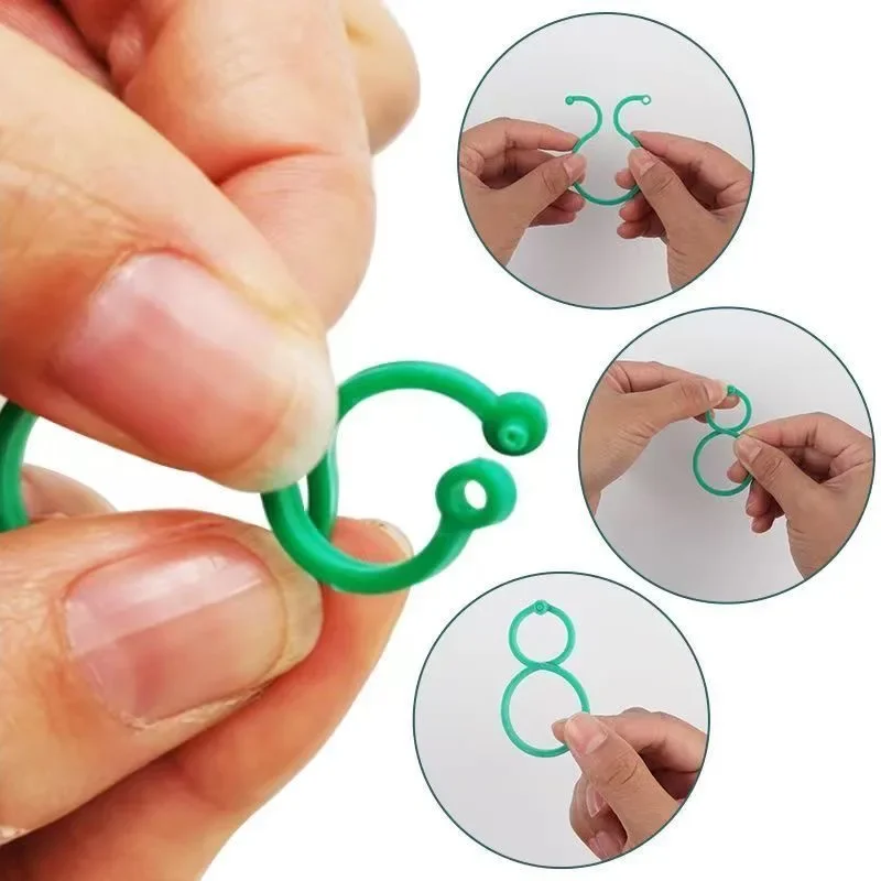 50/100Pc Clip per piante da giardino per la coltivazione di ortaggi Supporto per piante verticale Anello in plastica verde in bundle Supporto da giardino Strumento Supporto per vite